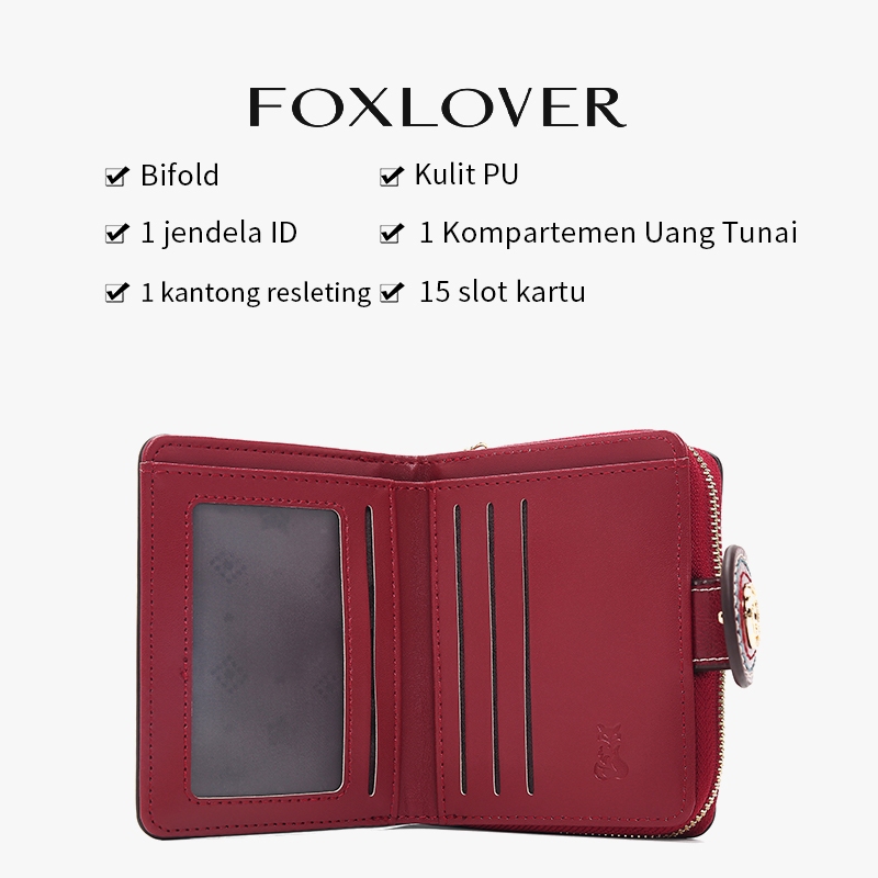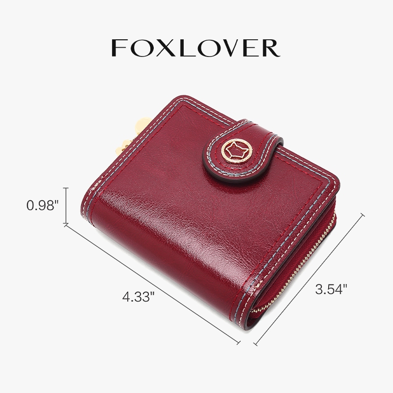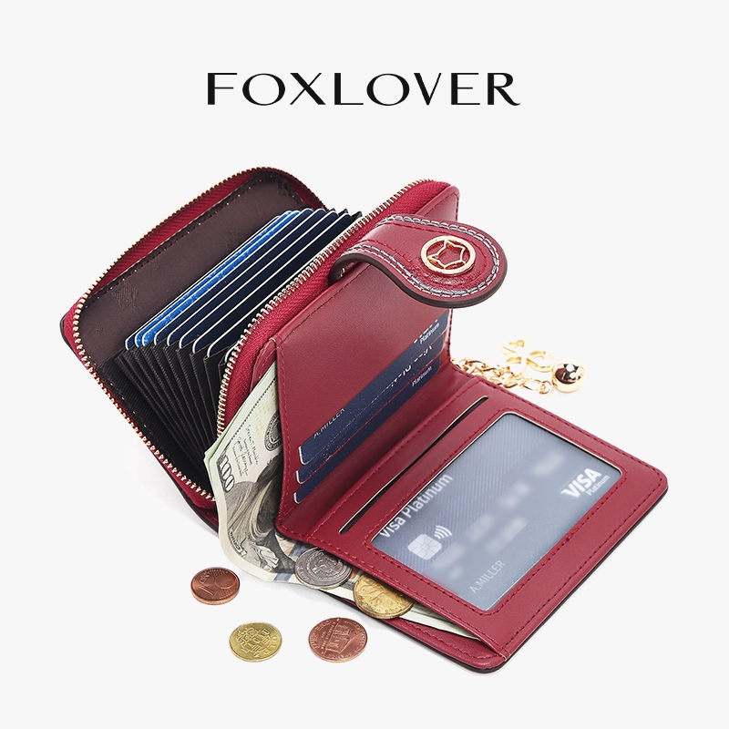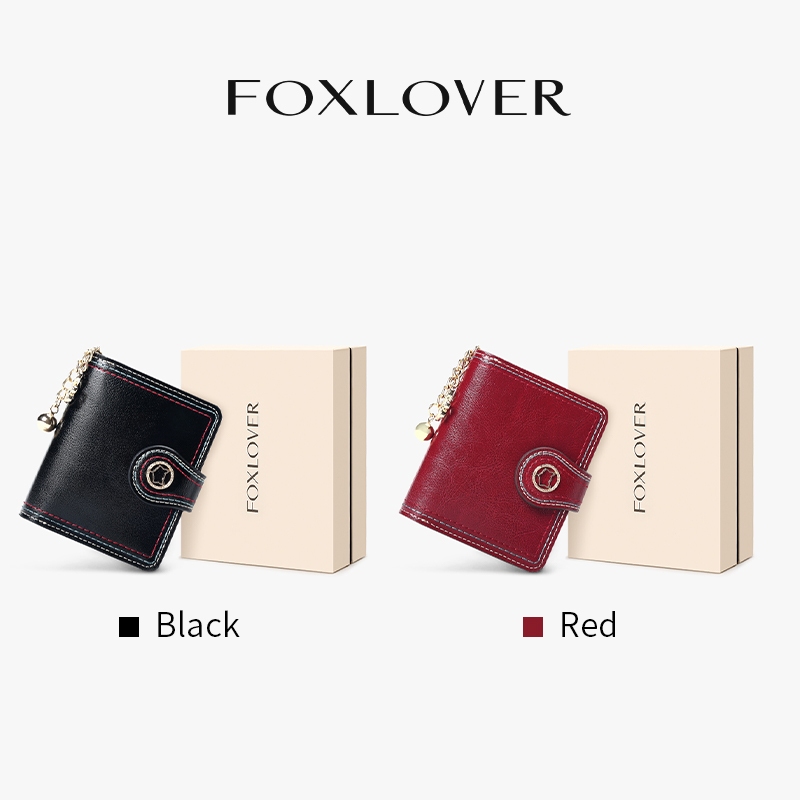 FOXLOVER กระเป๋าสตางค์ผู้หญิง สไตล์สั้น สไตล์ย้อนยุค ช่องใส่การ์ด 18ช่อง สไตล์คลาสสิก สีแดง สีดำ