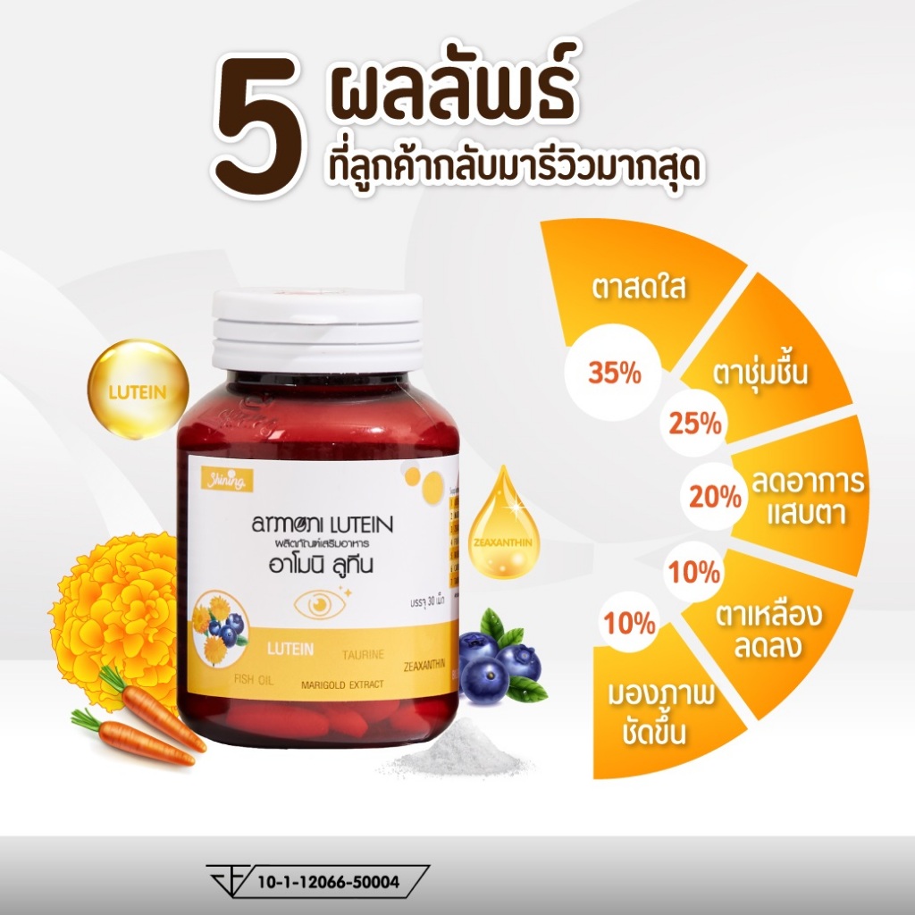 5 ขวด (ขวดละ 30 เม็ด) อาโมนิ ลูทีน สำหรับดวงตา Shining Armoni Lutein 1000 มิลลิกรัม