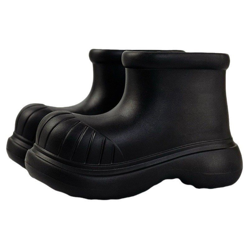 XIXITIAO รองเท้ากันฝนสุภาพสตรีสบายสีทึบรอบนิ้วเท้านักเรียนกันน้ํา Four Seasons Universal กลางแจ้ง