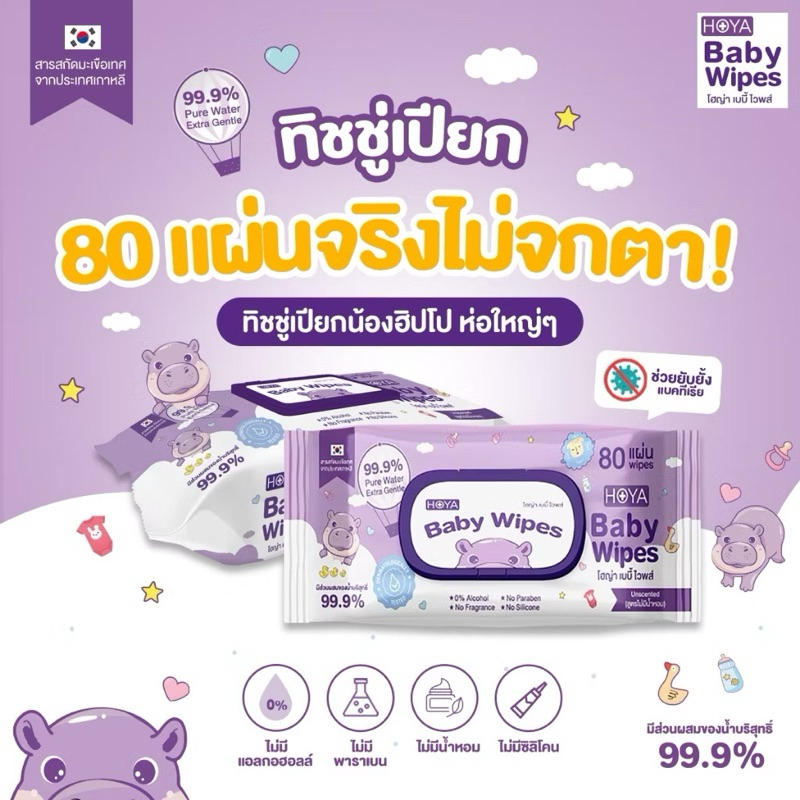 ทิชชู่เปียก HOYA Baby Wipes แบรนด์ไทย ผลิตไทย กระดาษเปียก