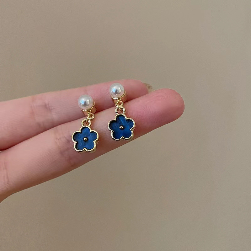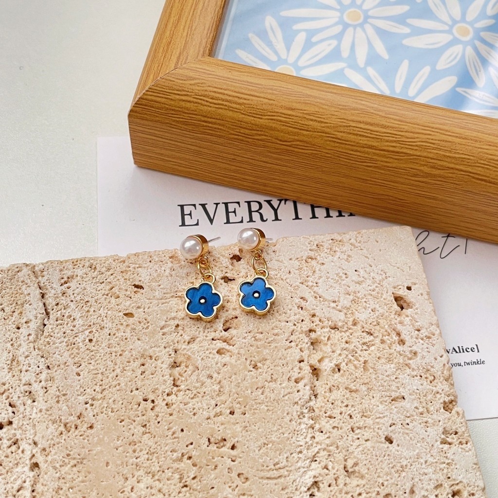 [GG] S925 เข็มเงินขนาดเล็กทุกการแข่งขันต่างหูดอกไม้สีฟ้าอุปกรณ์เสริมสุภาพสตรี