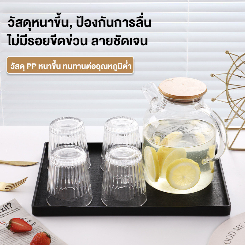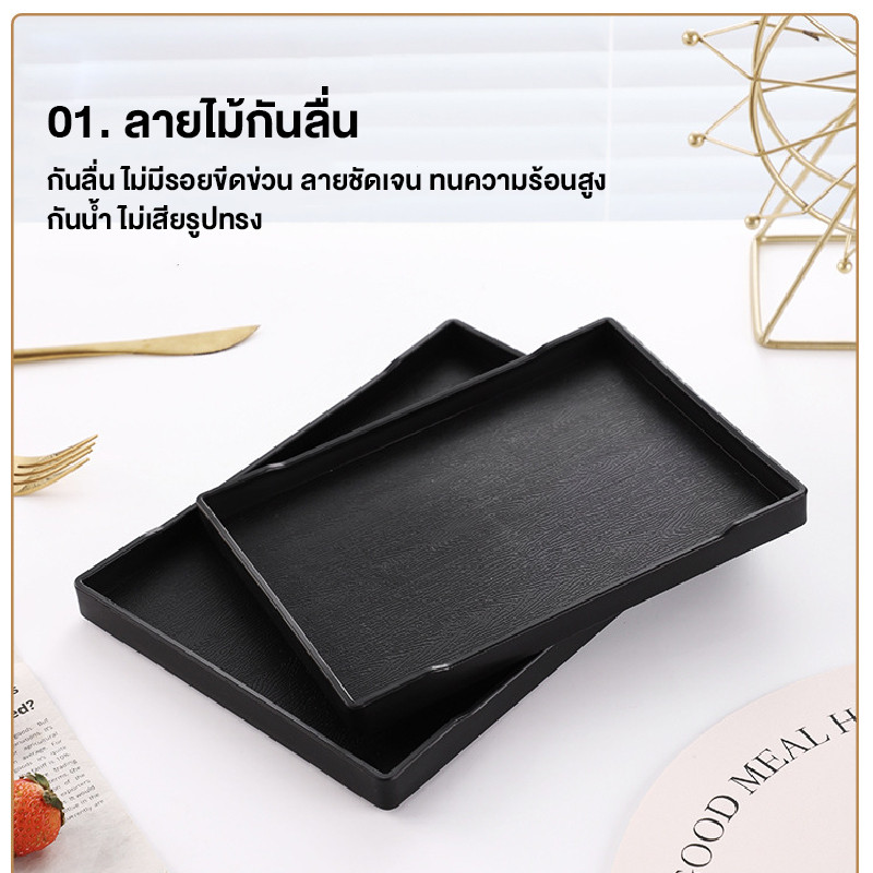 SUGA พร้อมส่ง ถาดเสริฟญี่ปุ่น ถาดพลาสติกลายไม้ สีดำ กันลื่น ถาดวางแก้วน้ำ ถาดชา ถาดเก็บของใช้อเนกประสงค์ COD SUR393