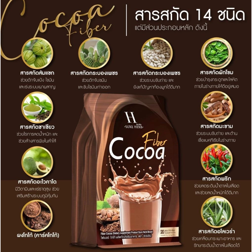 ☕️ ไฟเบอร์🔥โกโก้ ชัวร์เฮิร์บ คุมหิว อิ่มนาน เร่งการเผาผลาญ ของแท้ 100% [ 1 ห่อมี 20 ซอง ]