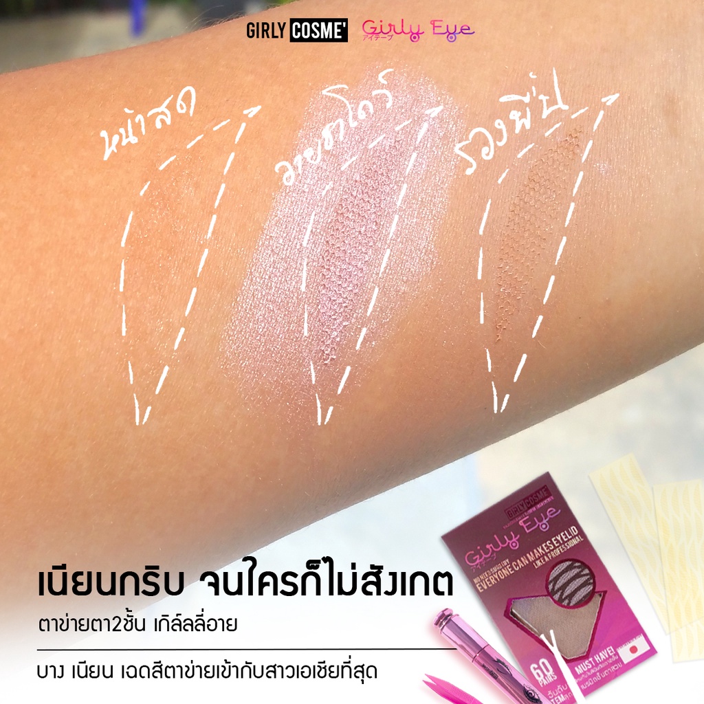 Girlyeye l ตาข่ายใยลินินติดตา 2 ชั้น ยืดหยุ่นใช้ซ้ำได้ ไซส์ M กล่องใหญ่ 60 คู่