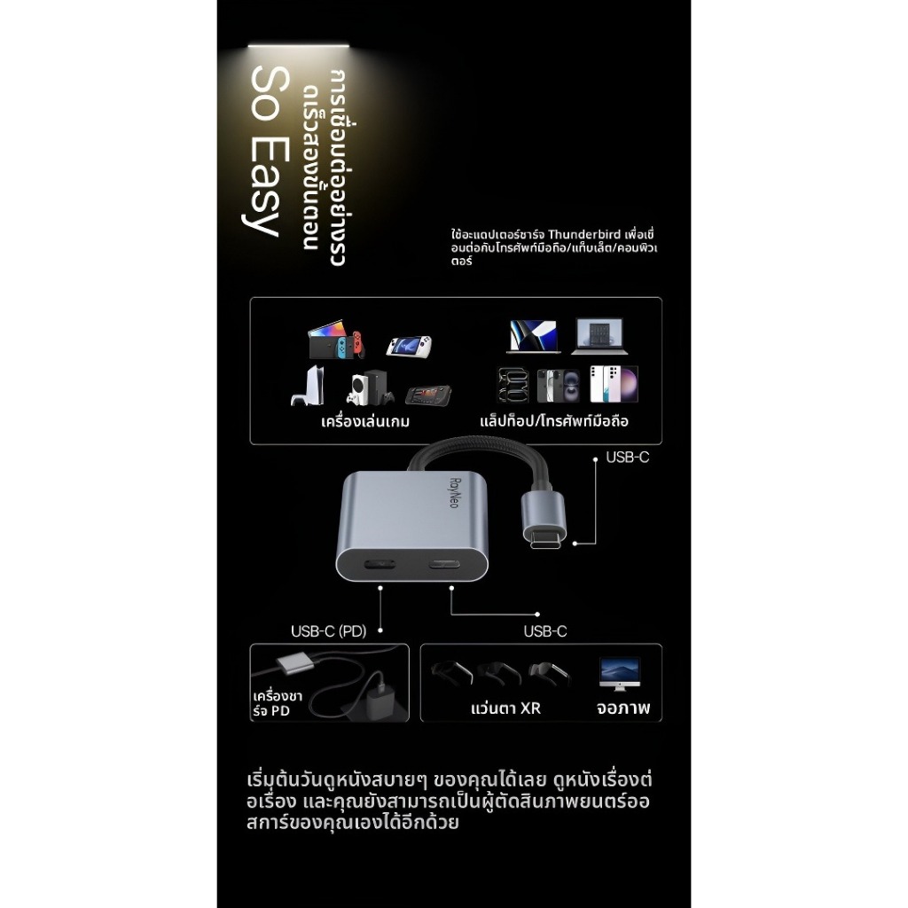 【New Arrival】Rayneo HubUSB-C Adapter Hub รองรับการชาร์จขณะใช้งานสำหรับอุปกรณ์ Type-C DP Interface, PD Fast Charge 100W