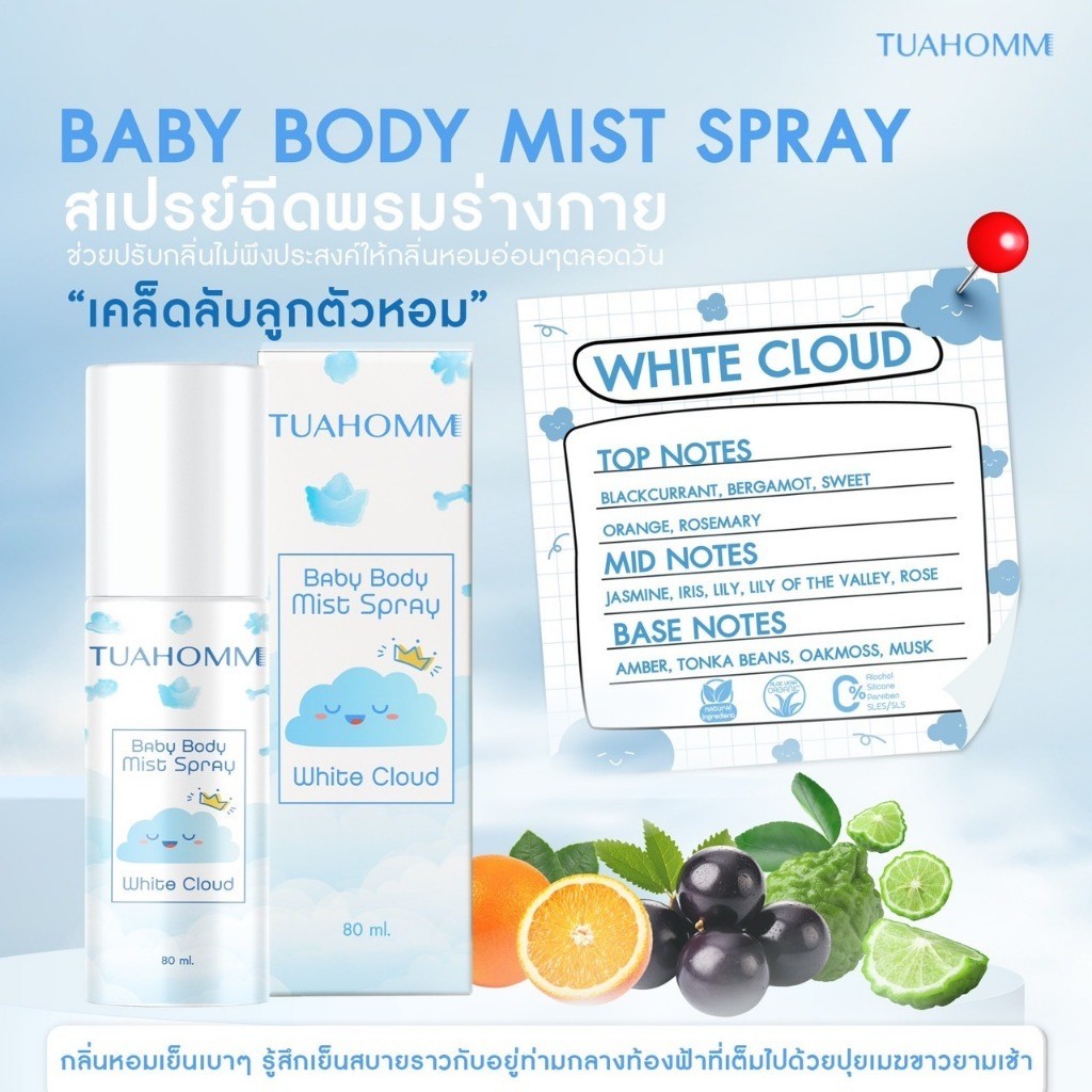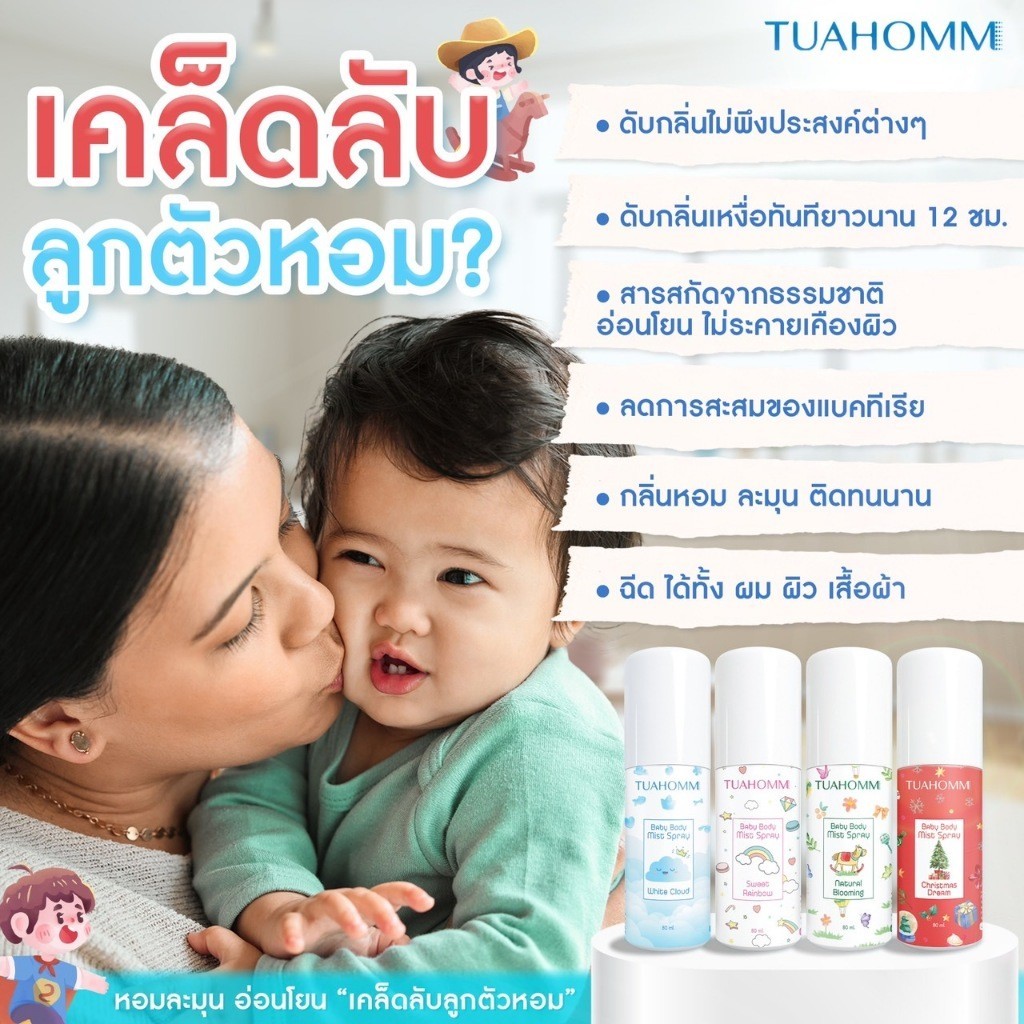 ✨โปร 2 ขวด✨Tuahomm สเปรย์ระงับกลิ่นคาวเหงื่อเด็ก Baby Body Mist Spray หอมสะอาด ดับกลิ่นคาวเหงื่อไม่มีแอลกอฮอล์ 80ml