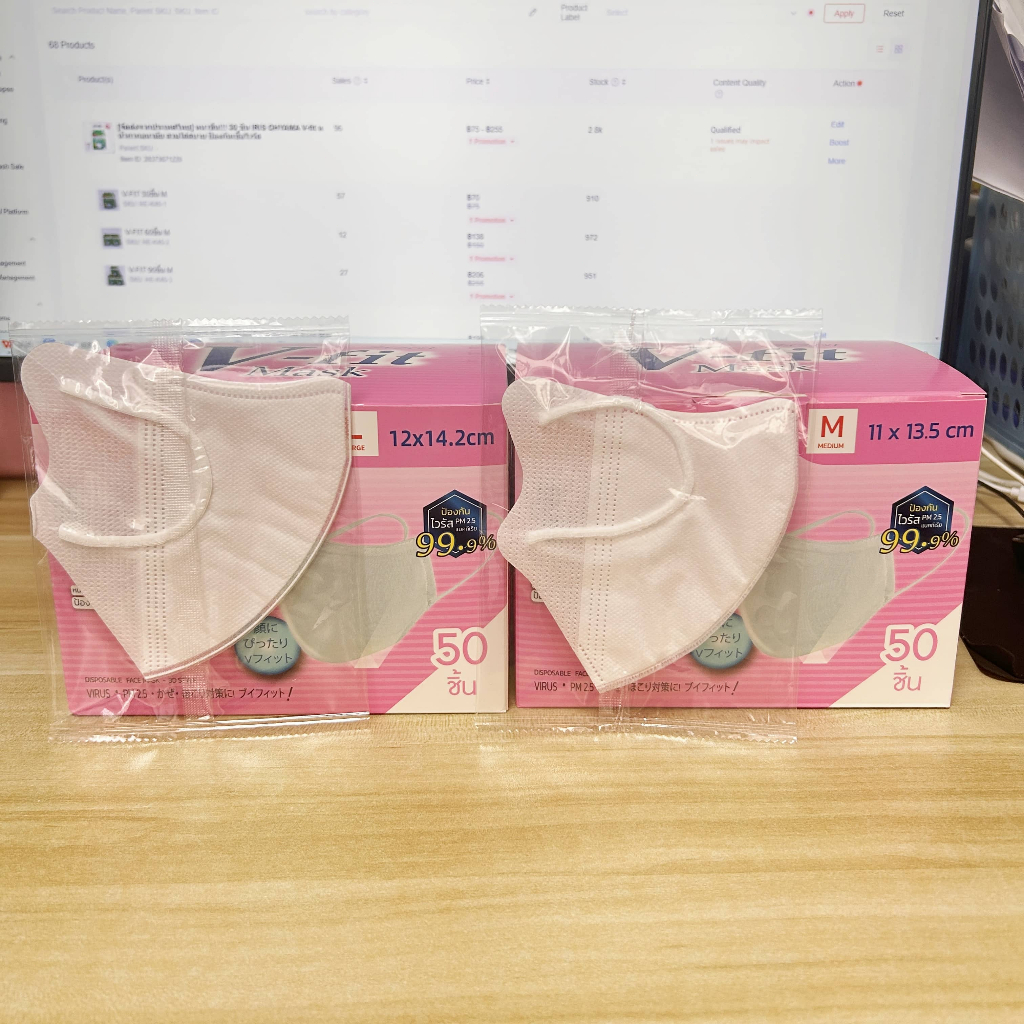 แพคเกจสีชมพูใหม่!!! 🚛จัดส่งที่รวดเร็ว M/L 50ชิ้น V-fit 3D Mask (แพ็คแยกชิ้น) หน้ากากอนามัยไอริสโอยามะ