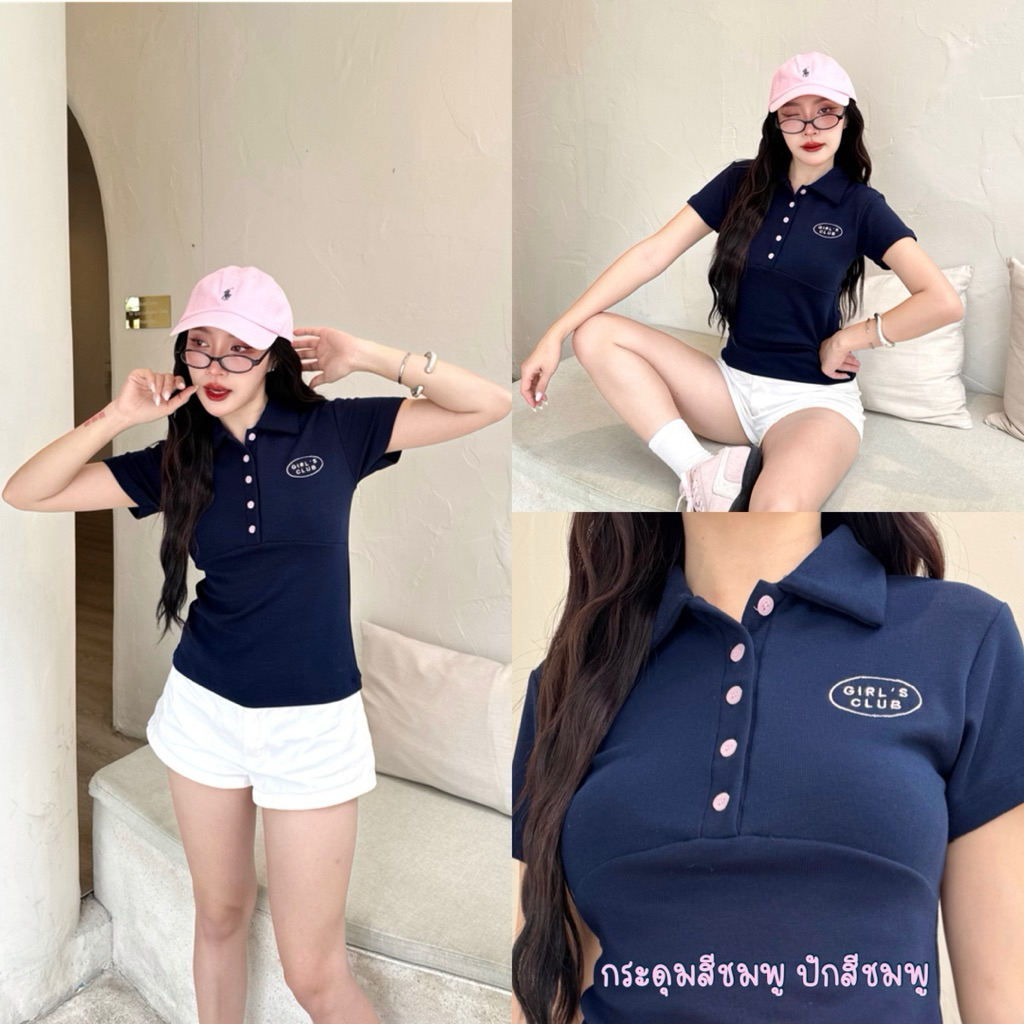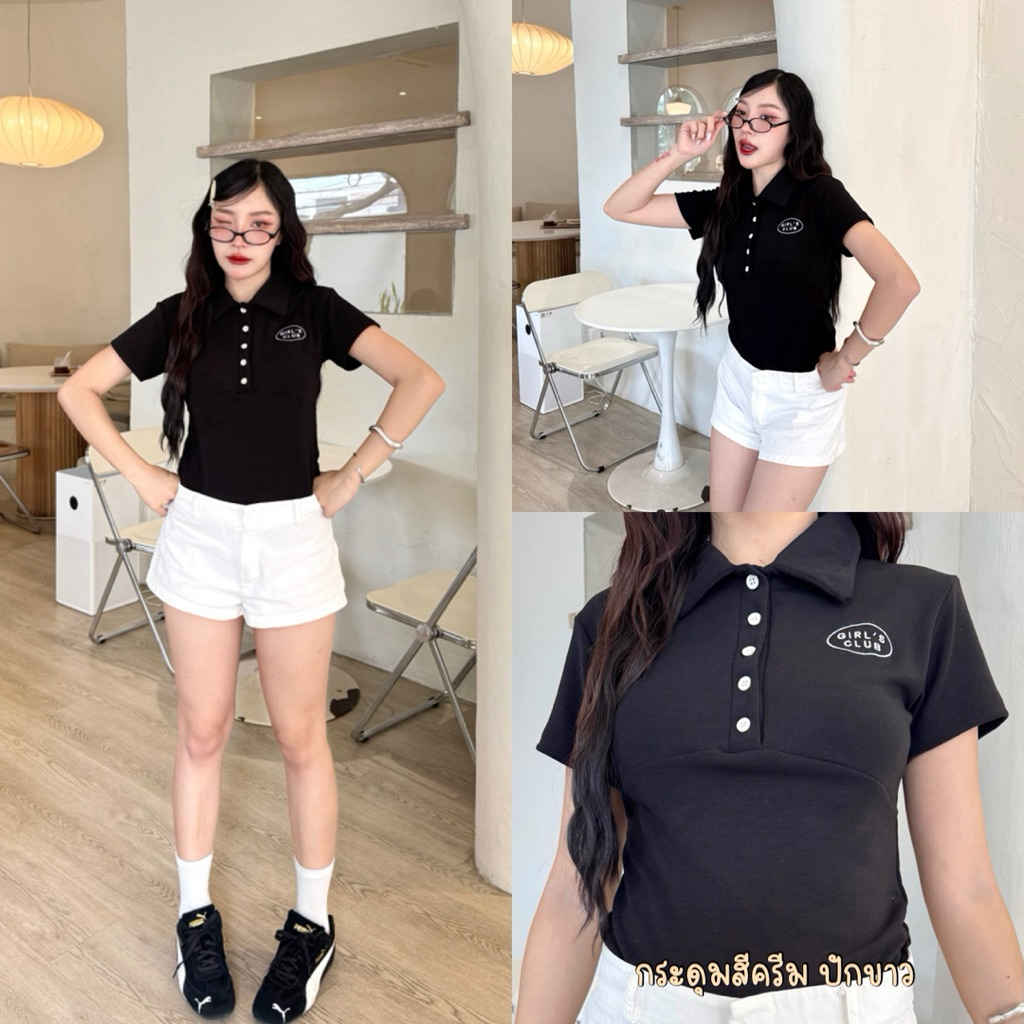 RICHYGIRL | Lucy Top เสื้อโปโลคอปกผ้าคอตตอนหนานุ่ม เย็บตีเกล็ดเข้ารูปสวยเป๊ะ ทรงสลิม (มี2ไซส์S/L) ในไลฟ์1xx