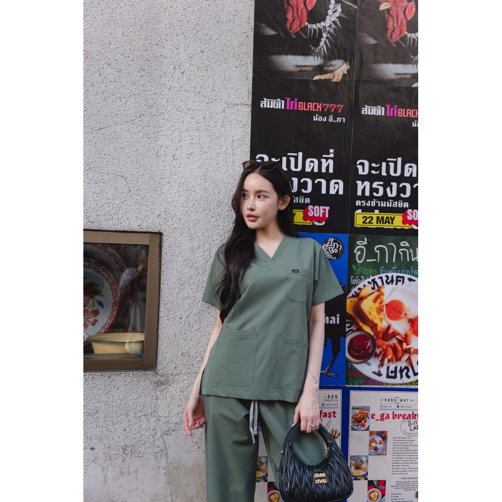 TOPS เฉพาะเสื้อ UNISEX FLOW SCRUB สี MOSS