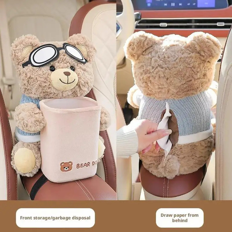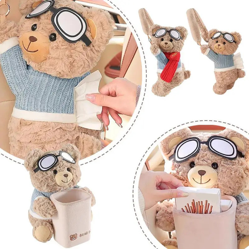 แอนดี้ หมี รถกล่องกระดาษทิชชูผู้ถือน่ารักแขวนออแกไนเซอร์มัลติฟังก์ชั่เบาะหลังการจัดเก็บอัตโนมัติตกแต่งภายในอุปกรณ์รถยนต์สากล