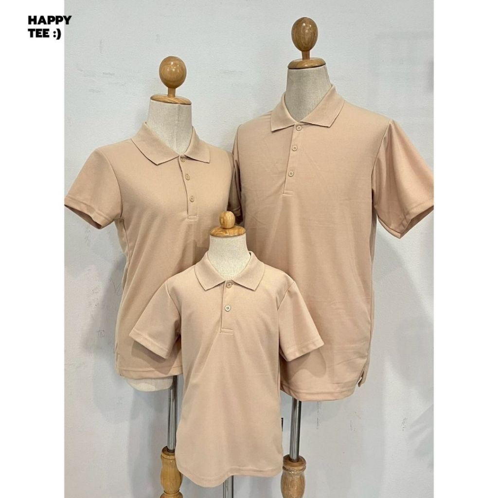 HAPPY TEE เสื้อโปโล " สีเบจ(ครีม) " ทรงสวย ผ้านุ่ม ใส่สบาย ไม่ต้องรีด ใส่ได้ทั้งครอบครัว