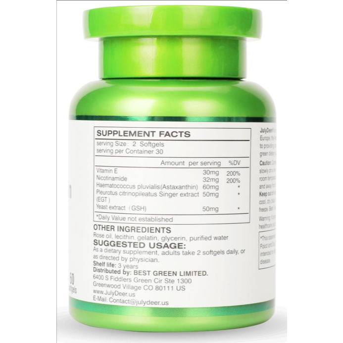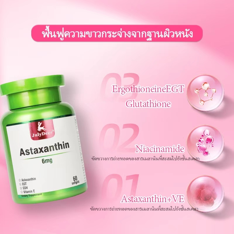 นำเข้า JulyDeer แอสตาแซนทิน 6mg สูตรคอมพเล็กซ์ 60 แคปซูล