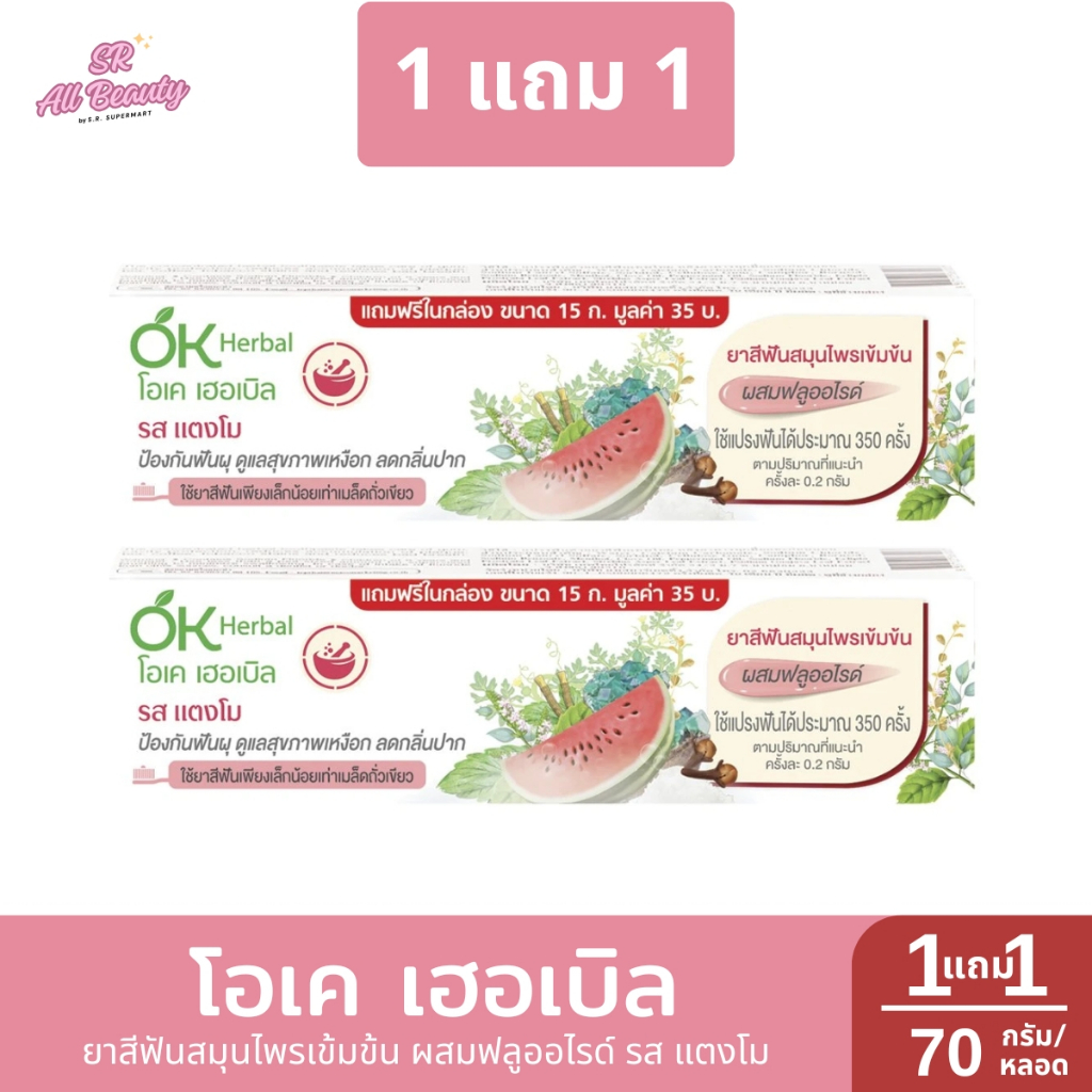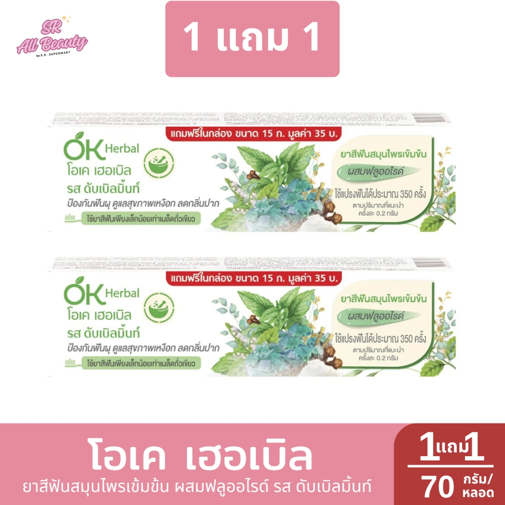 [ 1 แถม 1 ] โอเค เฮอเบิล ยาสีฟันสมุนไพรเข้มข้น ผสมฟลูออไรด์ ปริมาณ 70 กรัม (1หลอด)