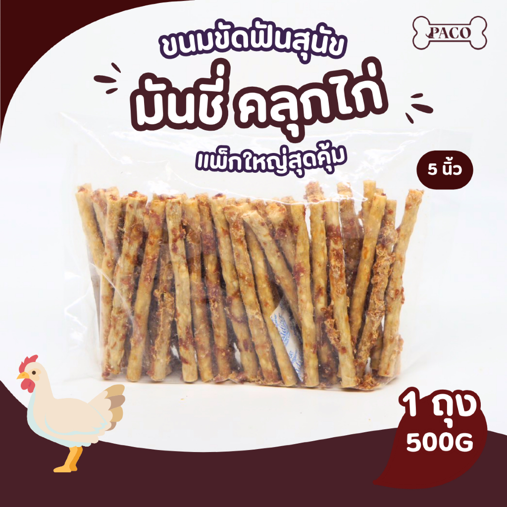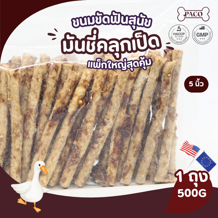 PACO ขนมสุนัข มันชี่คลุก(หมู/ไก่/เป็ด) 5 นิ้ว ขนาดใหญ่ 500 กรัม มาตรฐานส่งออก ขนมหมา ขนมขัดฟันหมา ขนมหมาเคี้ยวเล่น