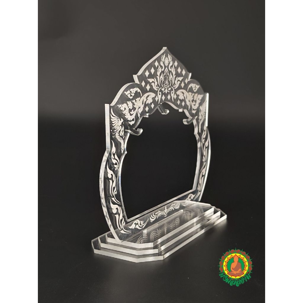 ซุ้มแขวนพระ 3องค์ลายไทยวิจิตร งานสลักลายอะคริลิคใสล้วน