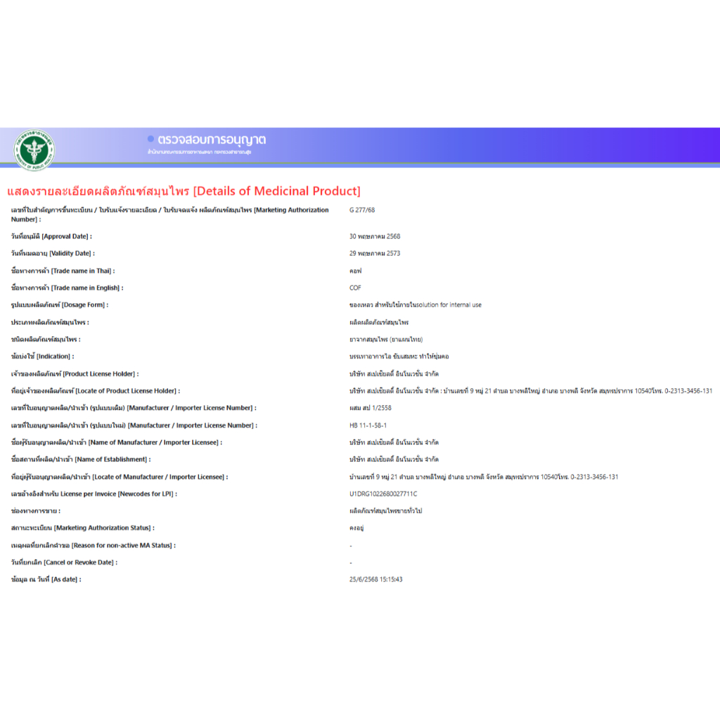 ยาน้ำเชื่อมแก้ไอตรีผลา คอฟ รสมะขาม 60 มล.