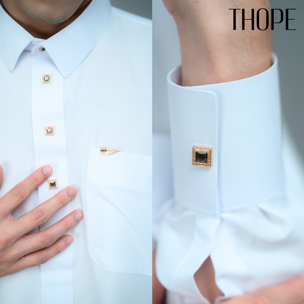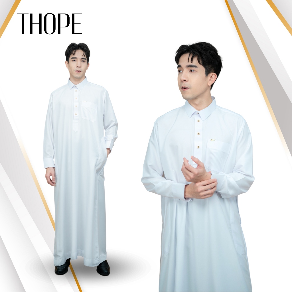 โต๊ปสีขาวคอปก งานแขนยาว แต่งกระดุมโลหะเหลี่ยมสี่ทองพรีเมี่ยม ทรงสวยหรูดูมีภูมิฐาน AF13 วาริสมุสลิม