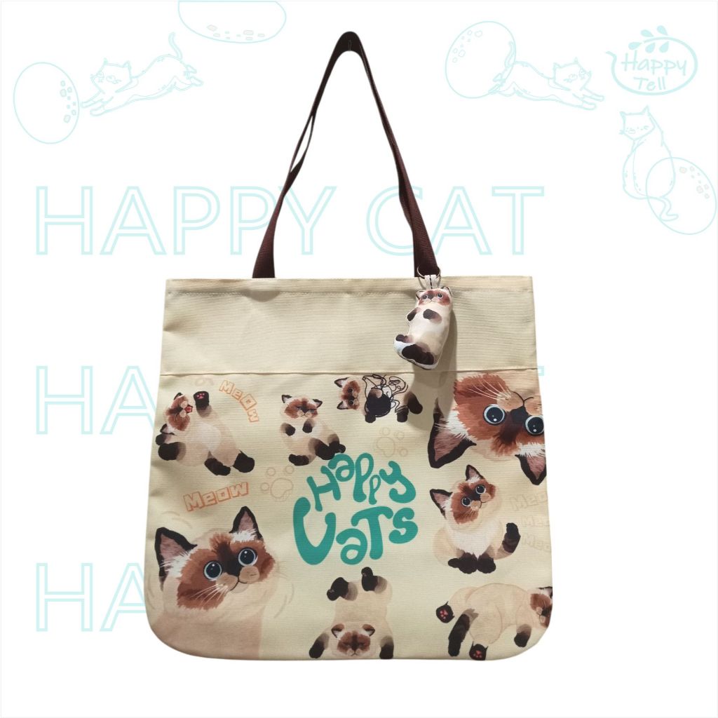 Happy Tell กระเป๋าสะพายข้าง ผ้าแคนวาส Shoulder bag ลายน้องแมวสุดน่ารัก set 5