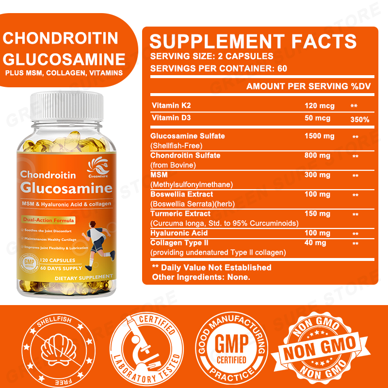 Glucosamine Chondroitin Support อาหารเสริมสุขภาพกระดูกร่วม - วิตามิน D3K2 MSM คอลลาเจน ขมิ้น