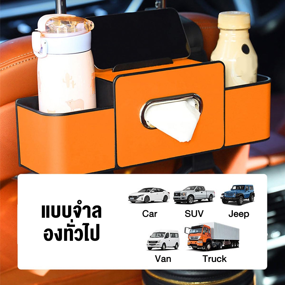กล่องเก็บของด้านหลังเก้าอี้ในรถกล่องทิชชู่มัลติฟังก์ชั่นถ้วยน้ําในรถขวดที่วางโทรศัพท์กล่องเก็บของจัดระเบียบในรถ