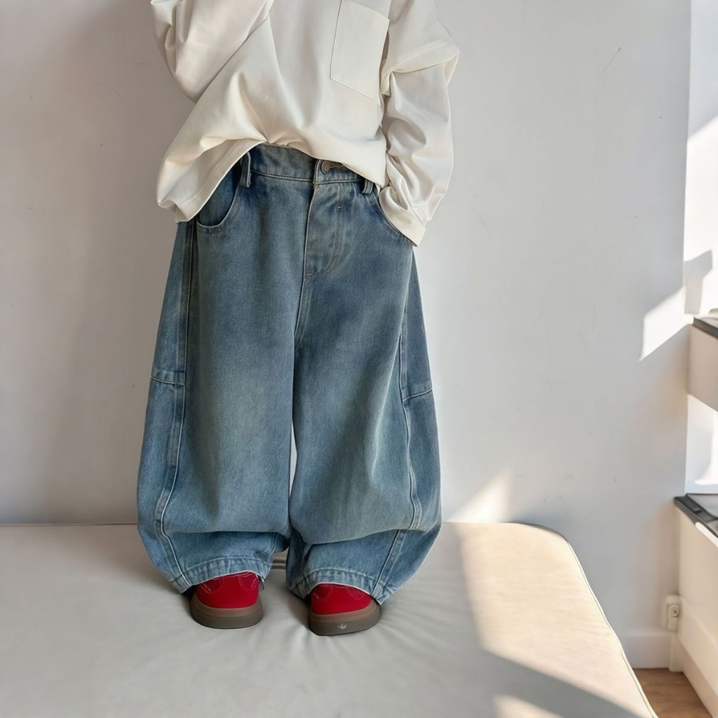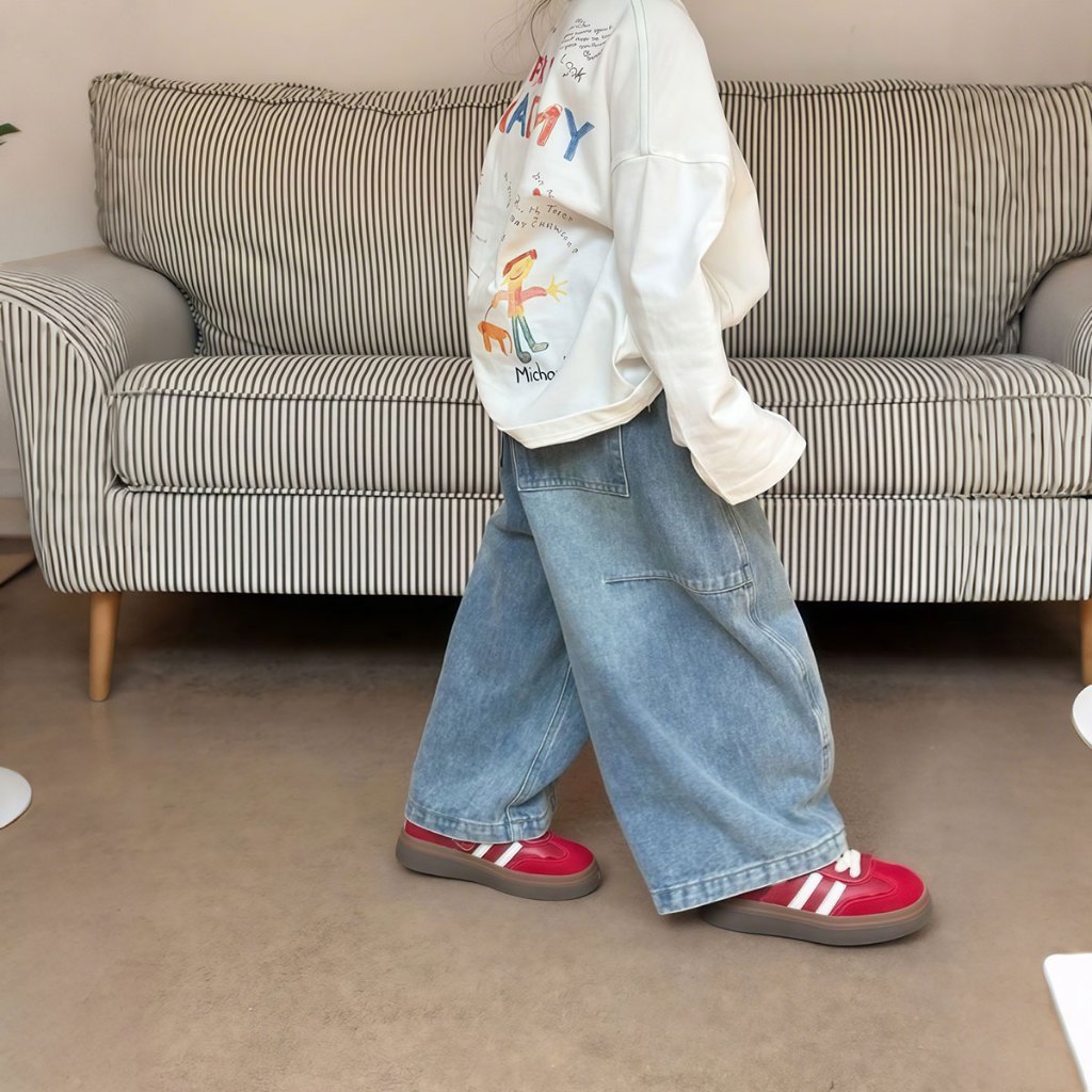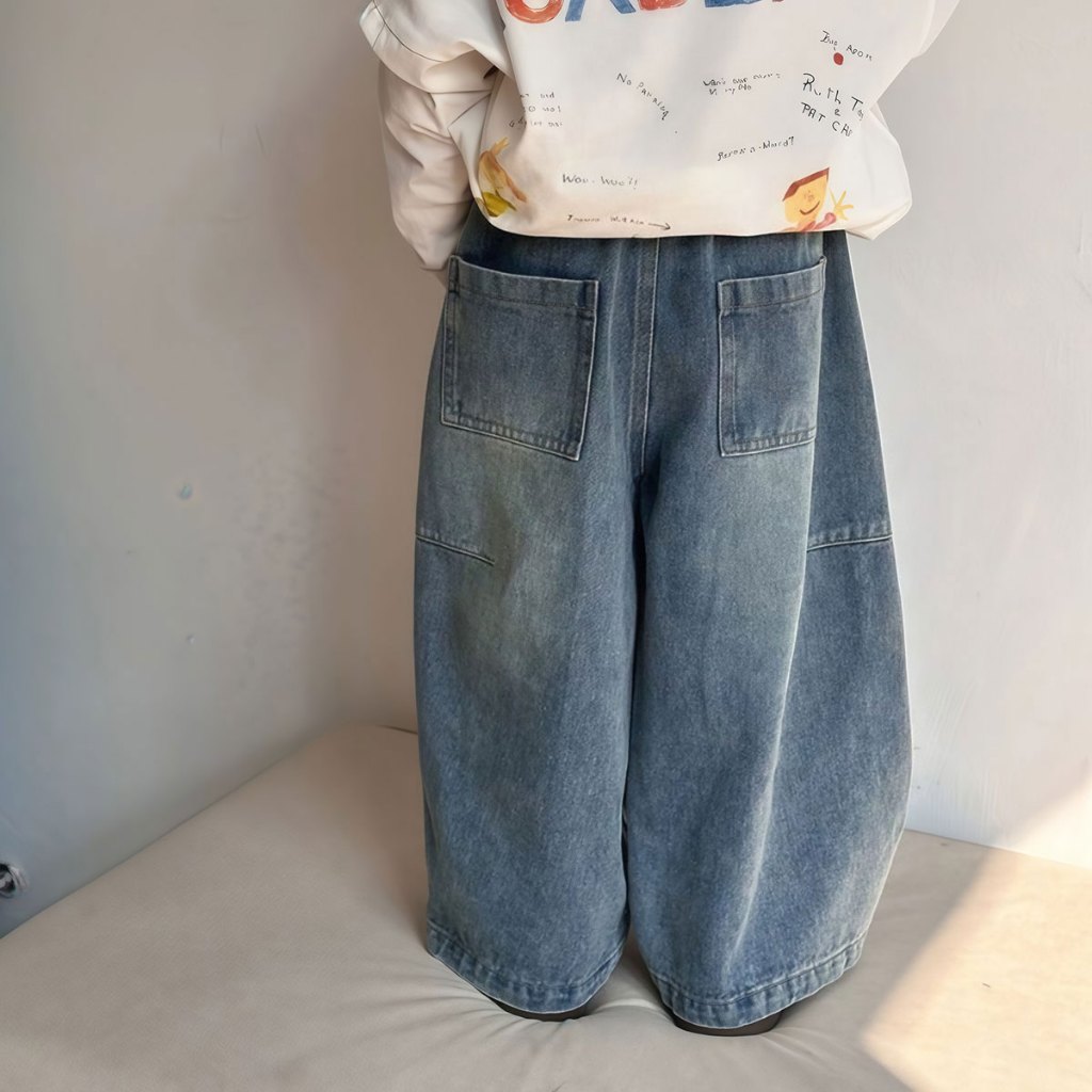 Beryl kids🌸กางเกงขายาวเด็ก🎀กางเกงยีนส์เด็กผู้หญิงแฟชั่น สไตล์ตะวันตก ขากว้าง ผ้านิ่ม สไตล์ฤดูใบไม้ผลิและฤดูใบไม้ร่วง