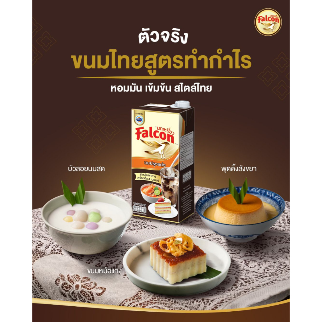 Falcon นกเหยี่ยว ฟอลคอน ผลิตภัณฑ์นมข้นจืด ขนาด 1 ลิตร มี 3 แบบ จำนวน 1 กล่อง