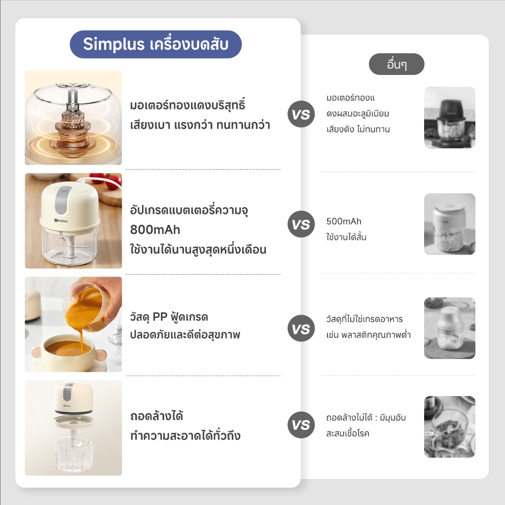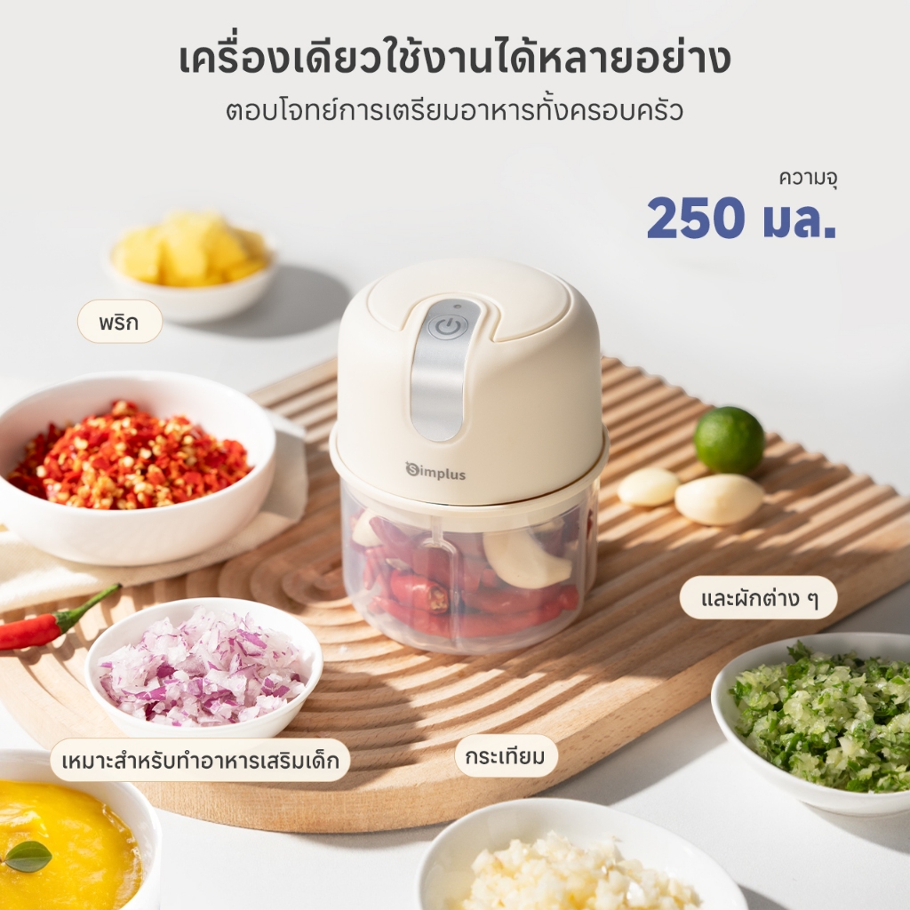 Simplus เครื่องบดสับอาหารพกพาไฟฟ้า อเนกประสงค์ วัสดุเกรดอาหารเด็ก DDJR007