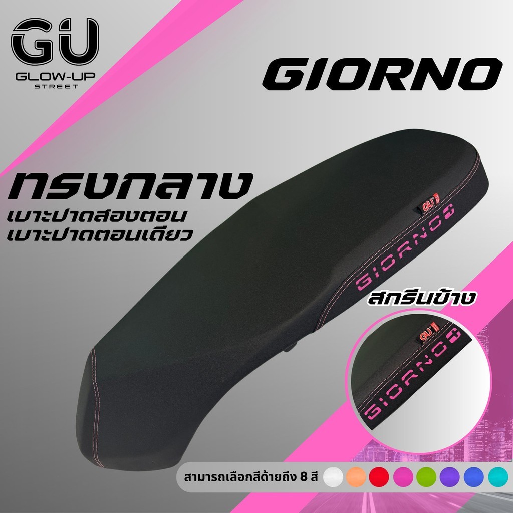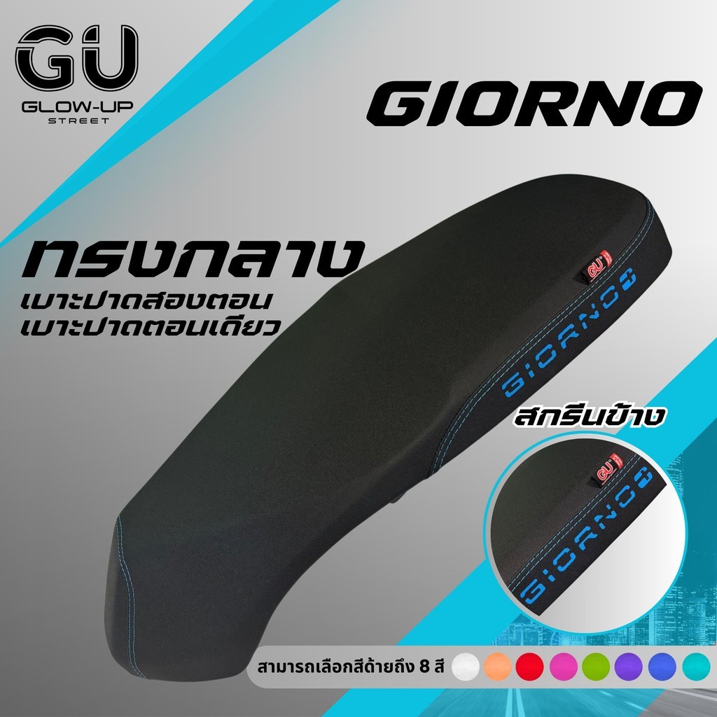 เบาะปาด จีออโน่ Giorno ใส่ได้ทุกปี สกรีนข้างมีให้เลือก 8 สี หนัง กันน้ำ ทรงกลาง มีทั้ง ตอนเดียว สองตอน เบาะมอเตอร์ไซค์