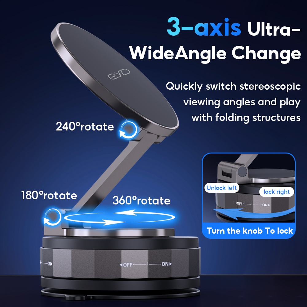 EYD VP05 ที่วางโทรศัพท์แบบแม่เหล็ก หมุนได้ 360° ปรับได้ ดูดสูญญากาศ ขาตั้งติดรถยนต์และตั้งโต๊ะอเนกประสงค์ พับได้หลายมุม