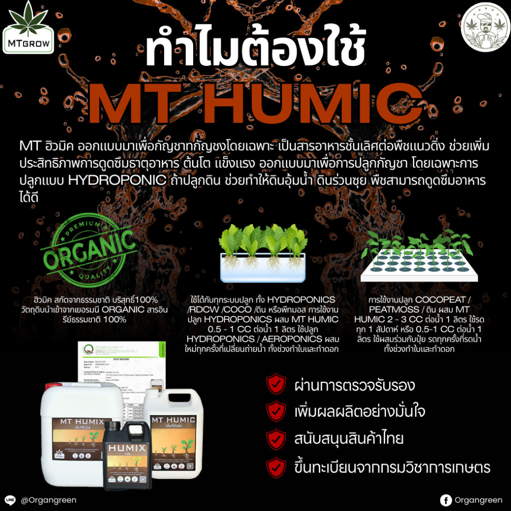 MTgrow HUMIC กรดฮิวมิคเกรดไฮโดรโปนิกส์ 5ลิตร ช่วยกระตุ้นราก ดูดซึมธาตุอาหารดีขึ้น พืชโตไว แข็งแรง ผลผลิตคุณภาพ