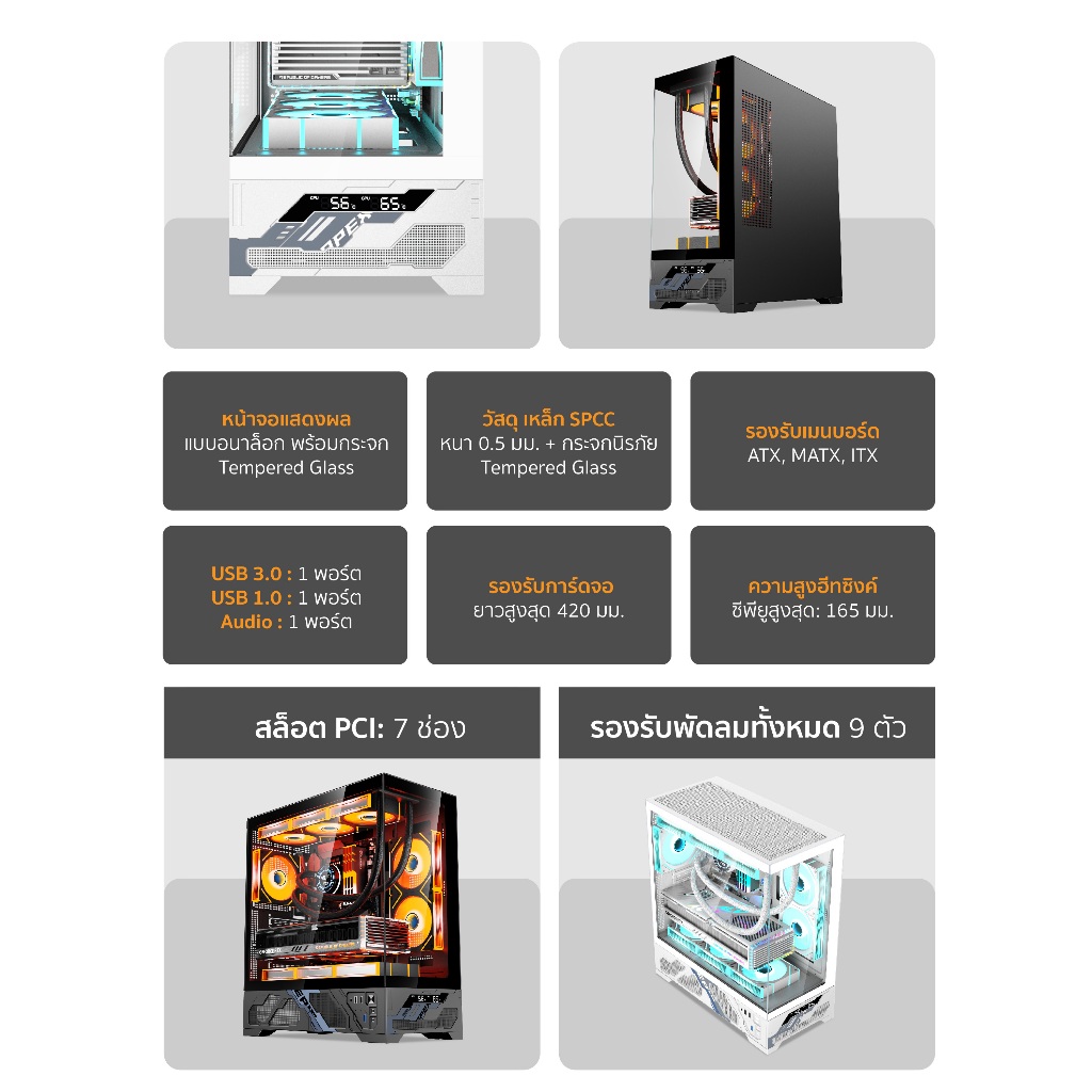 เคสคอมพิวเเตอร์ WJCOOLMAN Mille ATX Analog Screen Panorama Tempered Glass Gaming Case รับประกัน 1 ปี