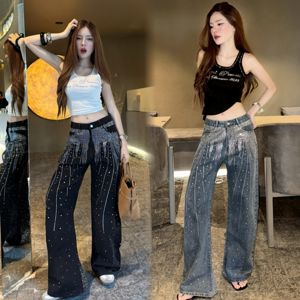 กางเกงยีนส์แต่งเพชรหลายแบบหลายสไตล์รวมไว้ที่เดียว กางเกงยีนส์แฟชั่นแต่งเพชรเท่ๆ กางเกงเพชรสวยๆใส่ได้ทั้งหญิงและชาย