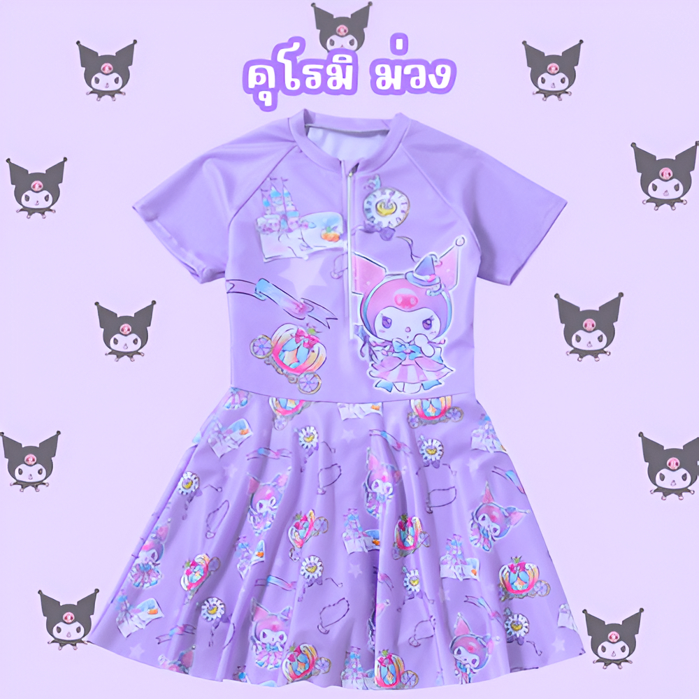ชุดว่ายน้ําเด็กการ์ตูน 6-14ปี ผ้าแห้งเร็ว ชุดว่ายน้ำเด็กผู้หญิง ใส่เที่ยวทะเลหรืออยู่บ้านชิลๆ วัสดุคุณภาพส ลายน่ารัก