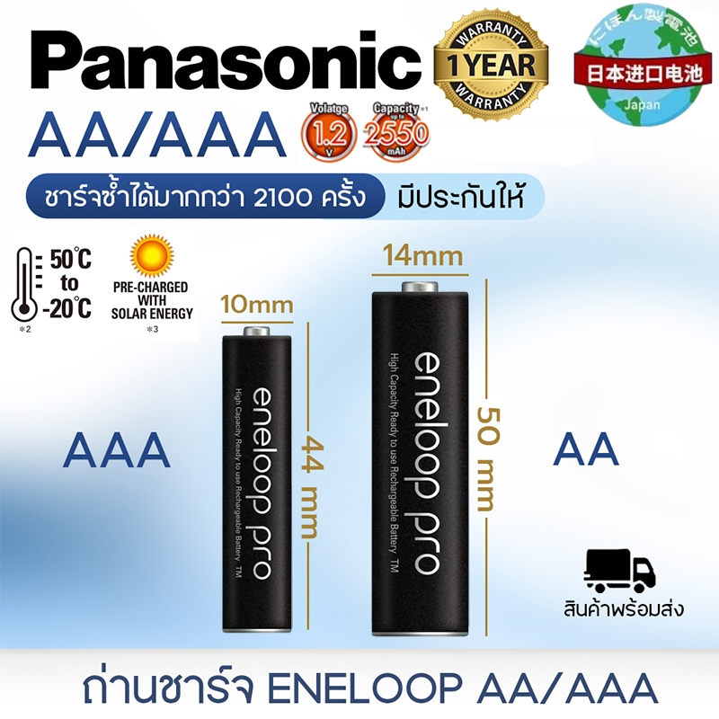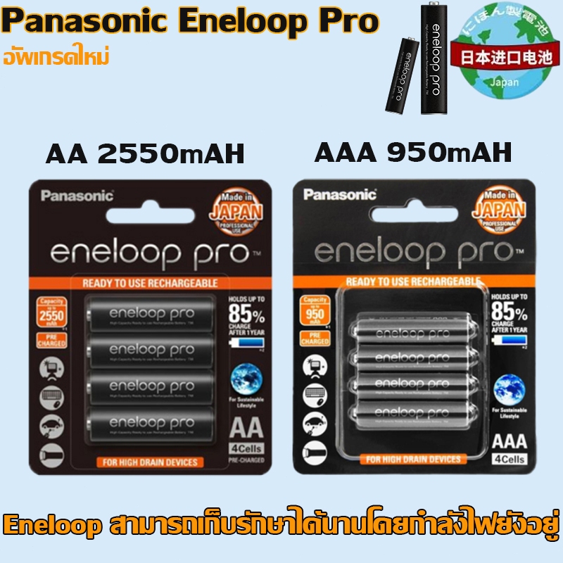 ถ่านชาร์จ Panasonic eneloop pro แบตเตอรี่ ถ่านชาร์จ AA2500mAh / AAA 950mAh Rechargeable Battery (1 แพ็ค 4 ก้อน BLACK)