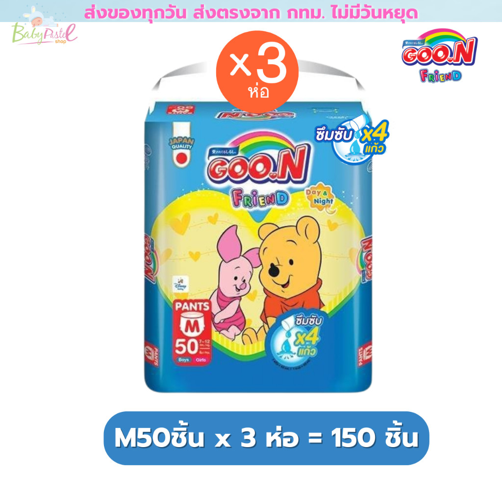 Goon Friend ยกลัง 3 ห่อ กูนน์ เฟรนด์ แพมเพิส แบบกางเกง แป้งเด็ก(ชมพู) ขอบขากระชับ (น้ำเงิน) M-3XL