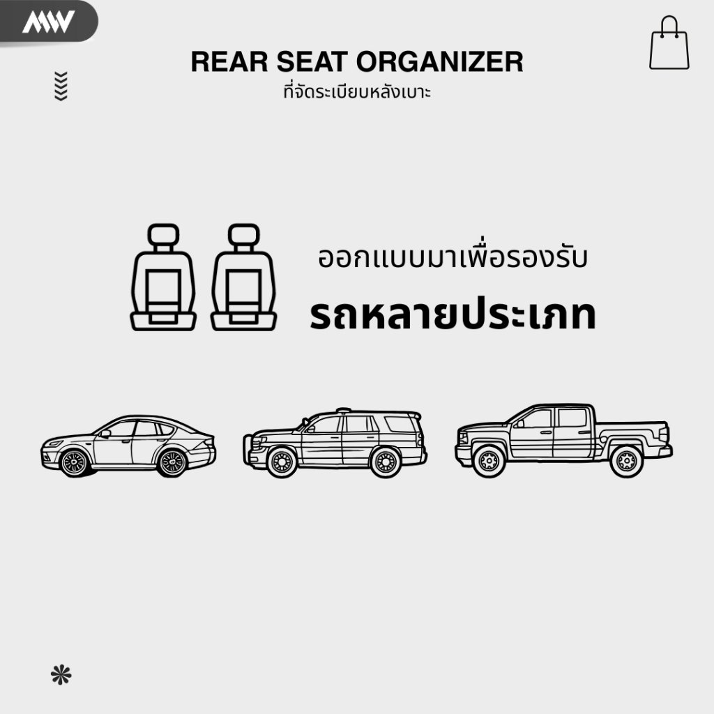 MAINWAVE กระเป๋าติดเบาะ ที่จัดระเบียบหลังเบาะรถยนต์ – Rear Seat Organizer กระเป๋าเก็บของหลังเบาะ, กระเป๋าแขวนหลังเบาะ