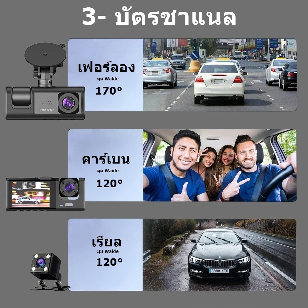 New 2025 Dash Cam กล้องติดรถยน กล้องติดรถยนต์ 3เลนส์ด้านหน้า/ด้านหลัง Full HD 1080P มีโหมดกลางคืน ติดต