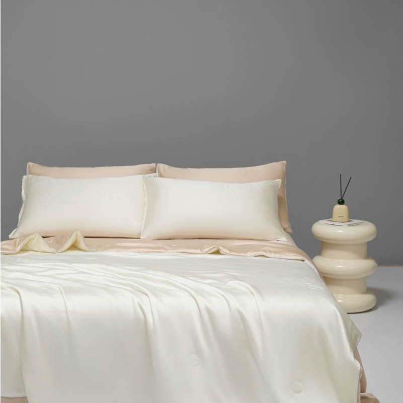 Abraca Dabra ชุดเครื่องนอนเย็น ผ้าห่มซาตินสีทึบ + ผ้าปูที่นอน + ปลอกหมอน 4ขนาด
