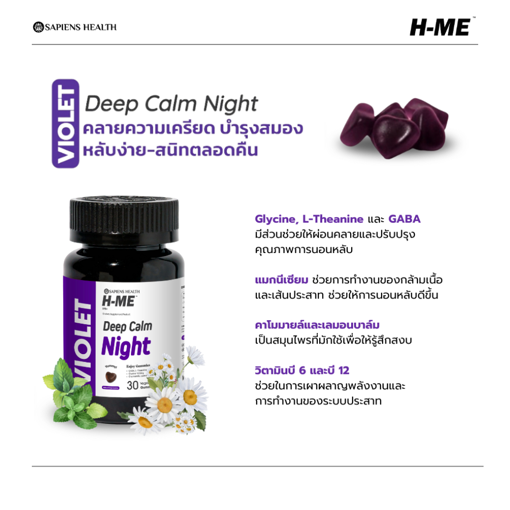 [4แถม1] H-ME VIOLET กัมมี่หลับง่าย-ลดเครียด บำรุงสมอง หลับสนิทตลอดคืน รสเชอร์รี่