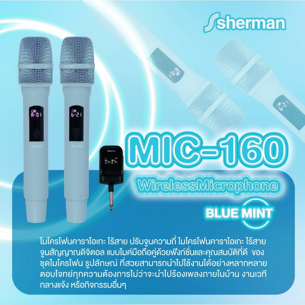 Sherman ชุดไมโครโฟนไร้สาย UHF รุ่น MIC-160 (สีฟ้า)