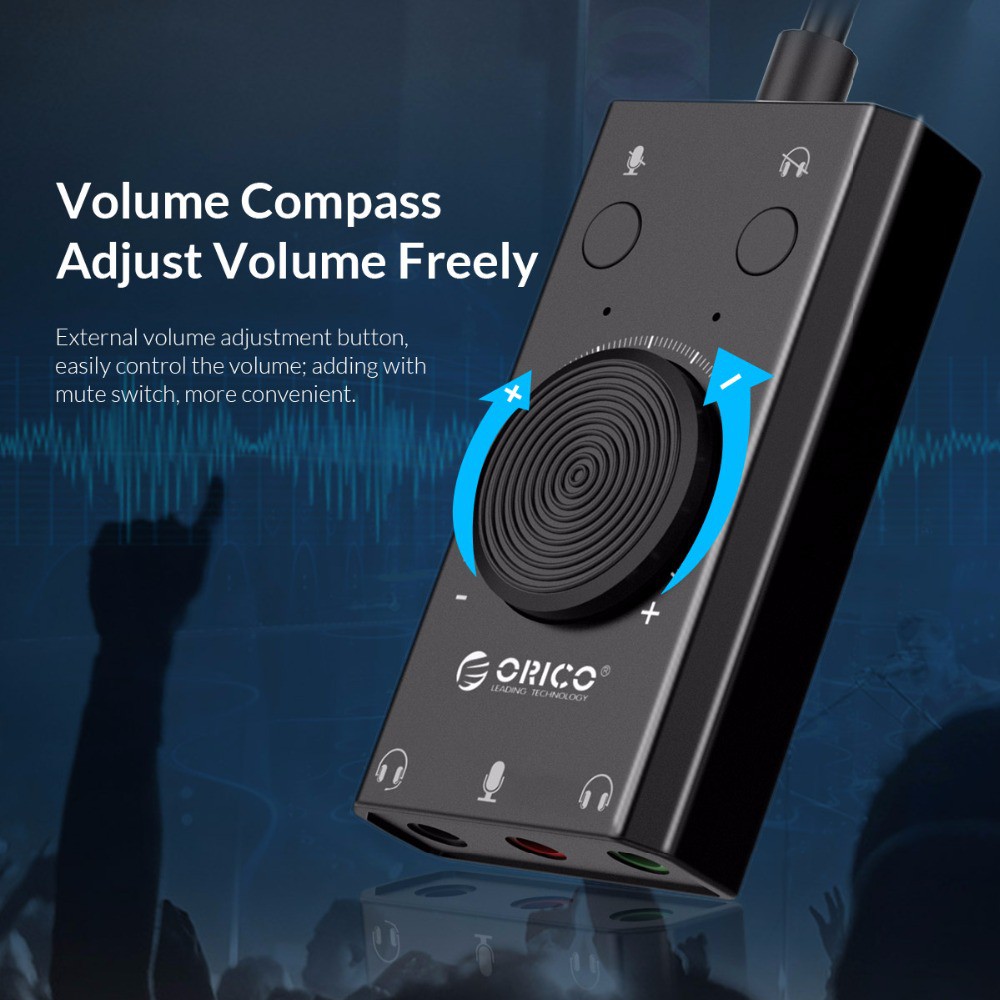 Orico การ์ดเสียงภายนอก USB พร้อมพอร์ตชุดหูฟังไมโครโฟนพอร์ตแจ็ค 3.5 มม.อะแดปเตอร์สวิตช์ปิดเสียงปรับระดับเสียง (SC2)