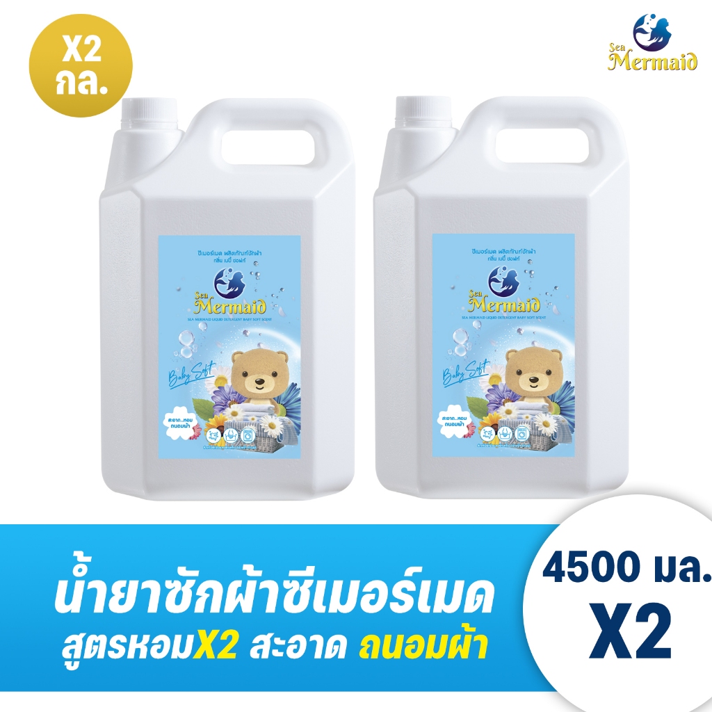 (ลดใหญ่ท้ายปี) SEA MERMAID น้ำยาซักผ้า 4x4500ml)กลิ่น Baby Soft สูตรหอมขับขัน แพ็คครอบครัวขนาดใหญ่