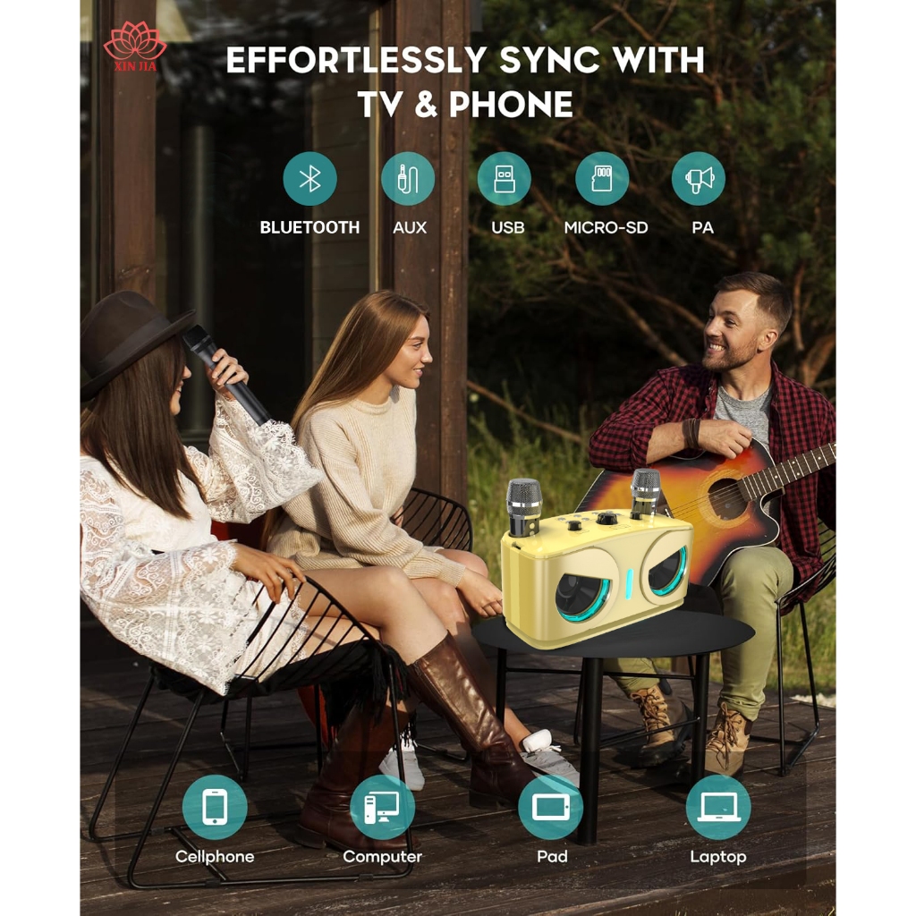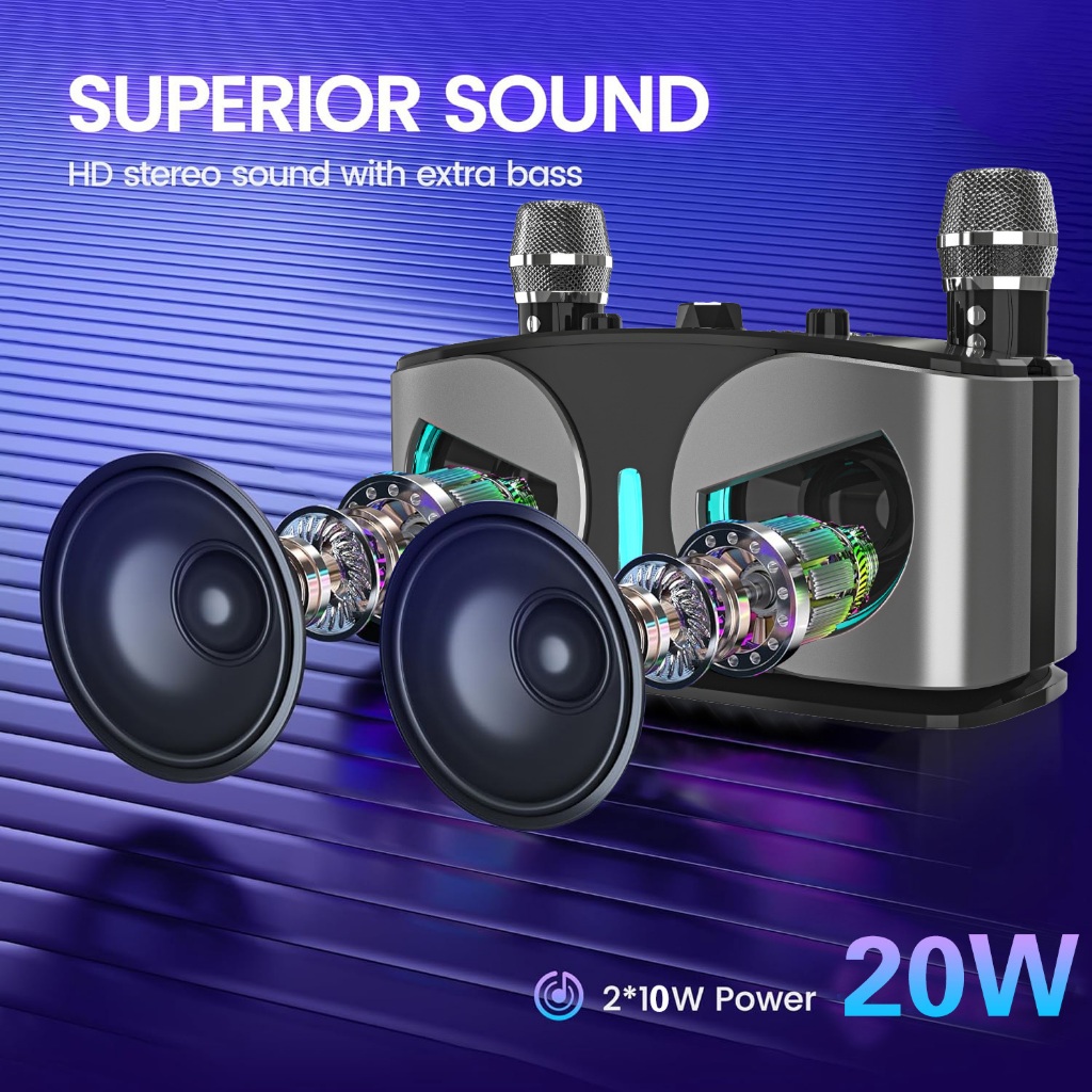 NEWMSNR ลําโพงคาราโอเกะ 20W พร้อมไมโครโฟนไร้สาย 2 ตัว ลําโพงบลูทูธเสียงรอบทิศทาง 9D พร้อมโหมด Echo/FM