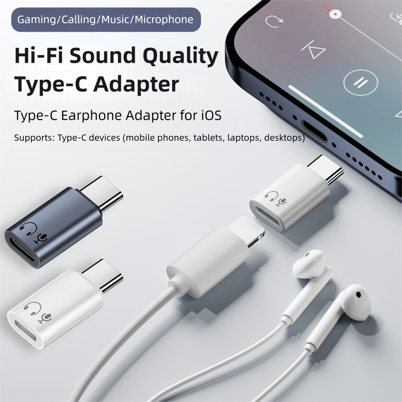 Fonken Type-C ถึง iOS Audio Adapter USB C ชาย iOS หญิงหูฟังตัวแปลงหูฟังสําหรับ iPh 16 15 แท็บเล็ต