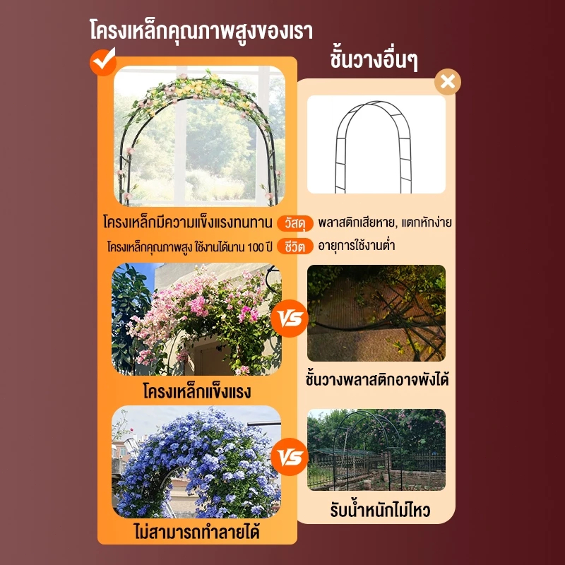 ซุ้มกุหลาบ 240x140x39cm ซุ้มไม้เลื้อย ซุ้มกุหลาบเลื้อย 2KG 13mm ซุ้มงานแต่ง ซุ้มเหล็กโค้ง ซุ้มแต่งงาน โครงไม้เลื้อย