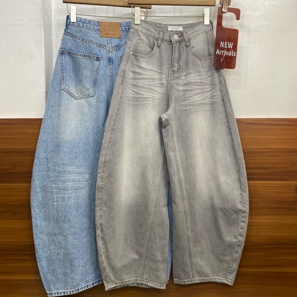 🔖X2 #N9009 StudioX2 BARREL JEANS กางเกงขาโค้ง สียีนส์ฟอกเฟค ทรงสวยเป๊ะ เน้นเก็บทรง ผ้ายีนส์เนื้อนิ่ม ใส่ไม่อ้วน