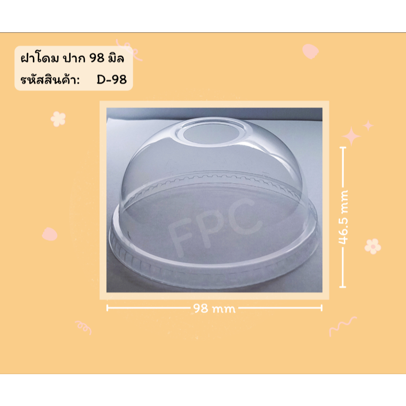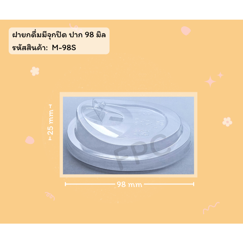 [ยกลัง*20แถว] 1000 ใบ ฝาปิดแก้วน้ำ ปาก 98 ยี่ห้อ FPC ฝายกดื่ม ฝายกดื่มมีจุก ฝาโดม ฝาฮาล์ฟ ฝาวิปครีม คละฝา(แจ้งหมายเหตุ)