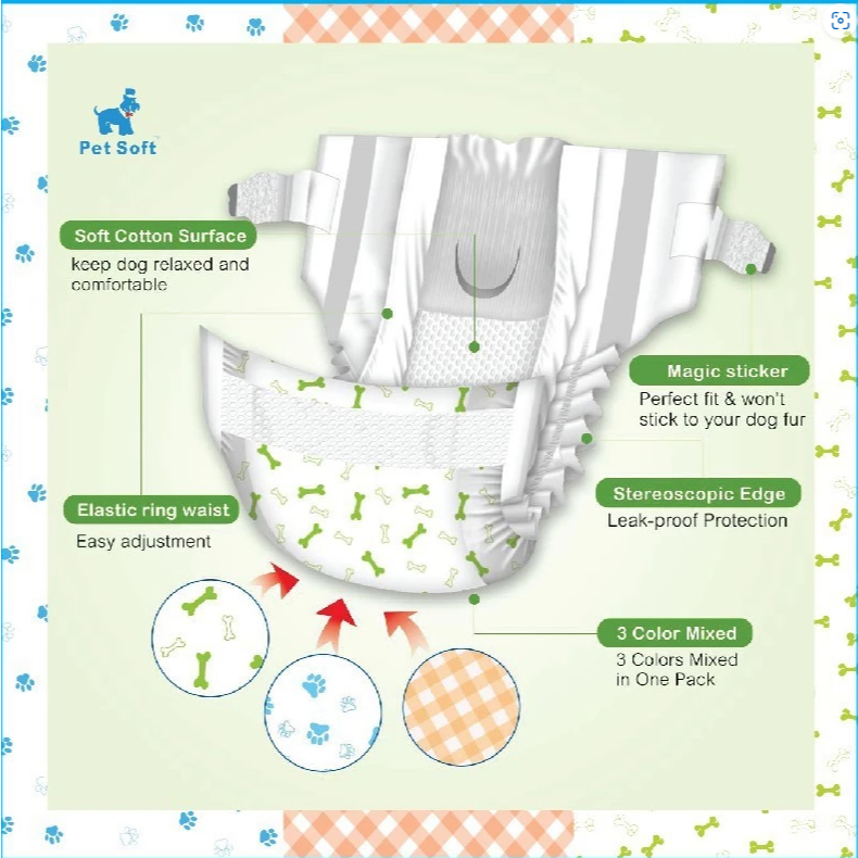 Pet soft แพมเพิสสุนัข เพศเมีย ผ้าอ้อมสัตว์เลี้ยง ซึมซับดีมากตลอดทั้งคืน ขอบยางนุ่ม แพ็ค12ชิ้น