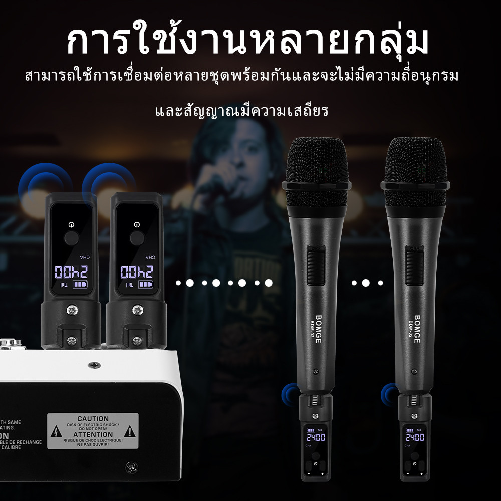 BOMGE WTU04 ระบบไมโครโฟนไร้สาย UHF ระยะทาง 80 เมตร แบตเตอรี่ 8 ชั่วโมง ตัวแปลงสัญญาณสำหรับไมโครโฟนคอนเดนเซอร์ไดนามิก