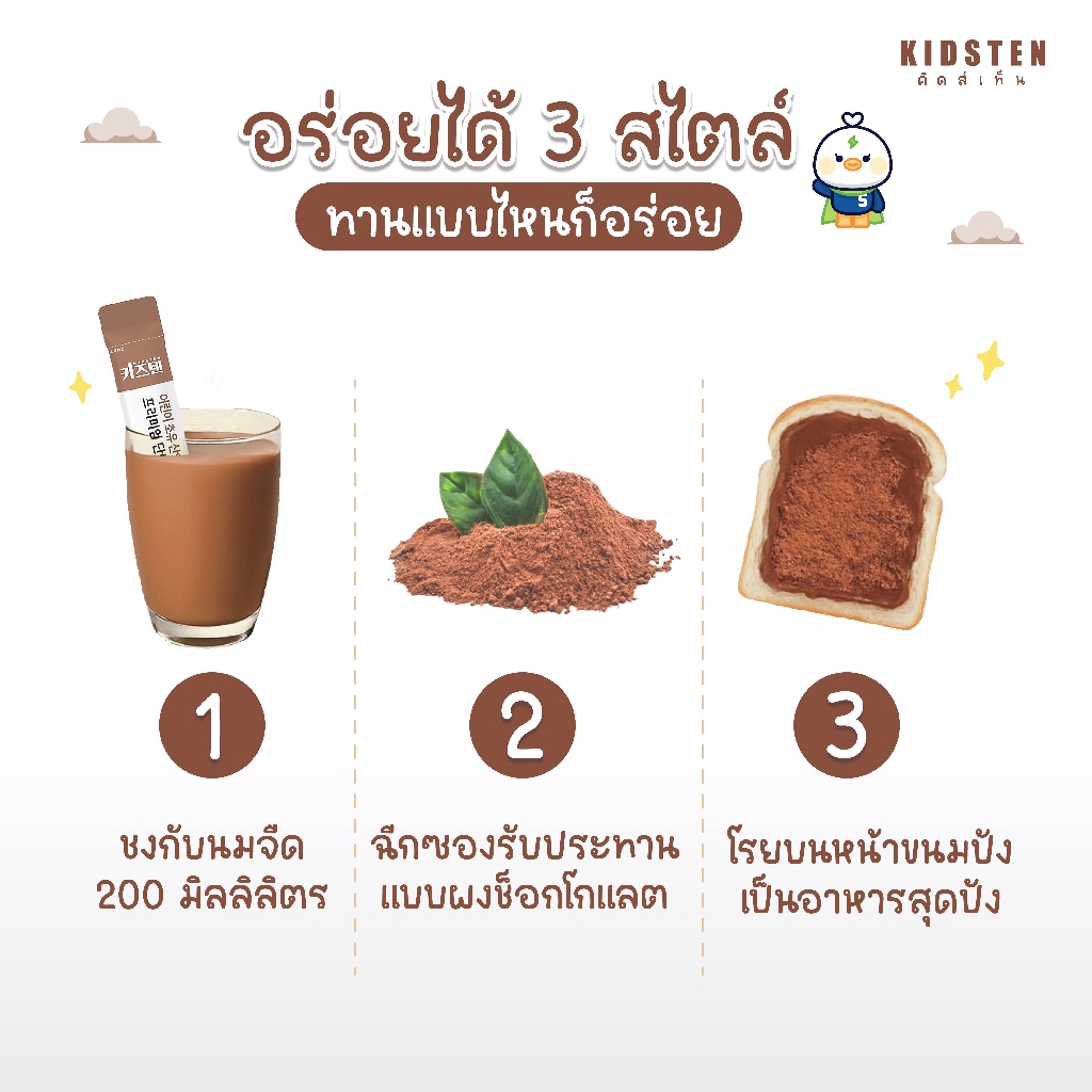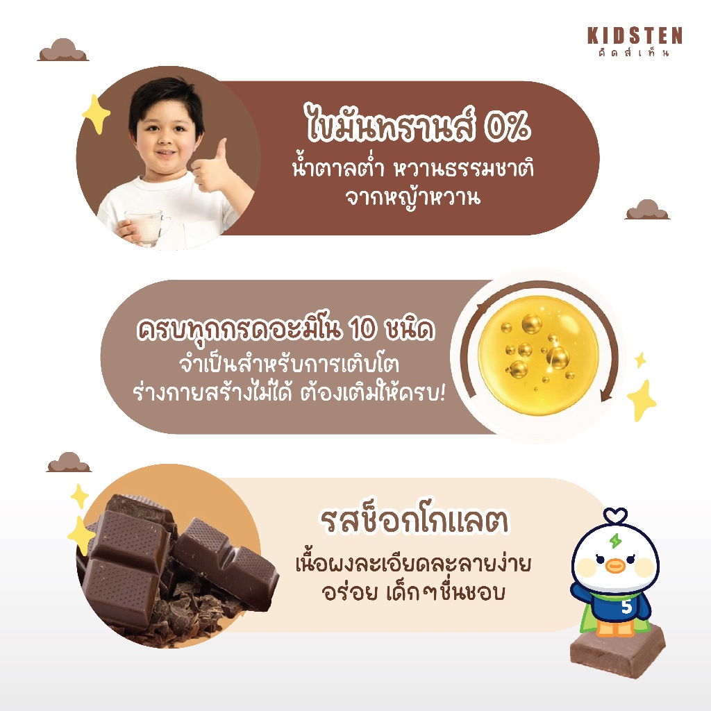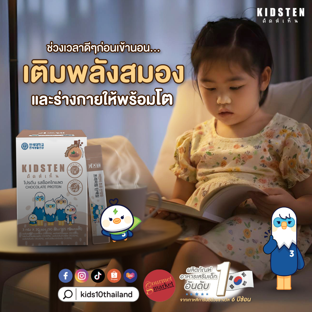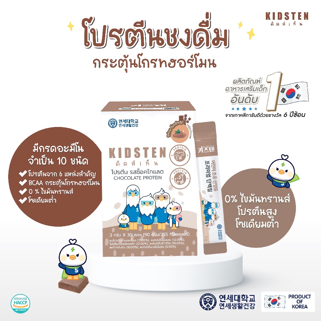 KIDSTEN โปรตีนเด็กพรีเมียมรสช็อกโกแลตสำหรับเด็กจากเกาหลี 🇰🇷 1 กล่อง (30 ซอง) (Colostrum Goat Milk Premium Protein)